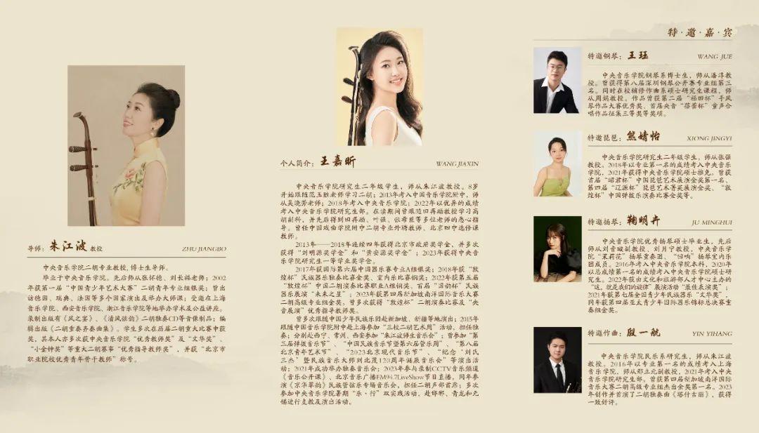 熊婧怡,中央音乐学院研究生二年级学生,师从张强教授。2018年以专业第一名的成绩考入中央音乐学院,2021年获得中央音乐学院硕士推免。曾获首届“昭君杯”中国琵琶艺术展演金奖第一名、第四届“辽源杯”琵琶艺术菁英展演金奖、“敦煌杯”中国弹拨乐演奏比赛金奖等。