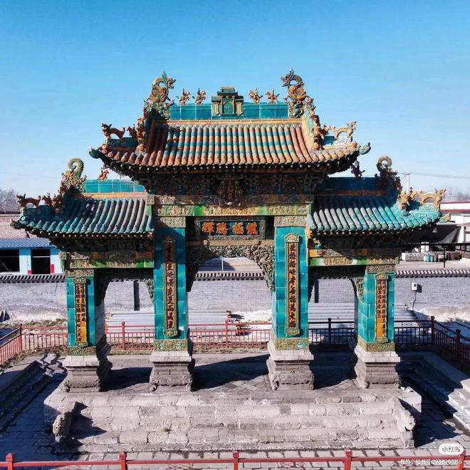 第二类是琉璃牌坊。这类牌坊多用于佛寺建筑群内。