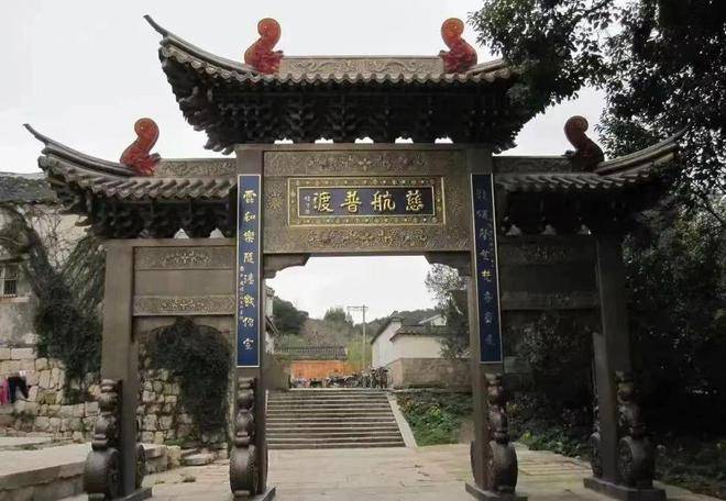 第七类是铜制牌坊。由中国工艺美术大师朱炳仁设计创建中国第一座铜牌坊,高6.1米、宽7米,重近百吨。牌坊在普陀山进香古道妙庄严路入口处。牌坊由中国佛教协会会长传印题“慈航普渡,另一面由原国家宗教局局长叶小文题词“妙庄古道”,由国学大师文怀沙撰联“雅颂声共梵音齐远,云和月随法鼓偕宣”,另一面由西泠印社书法家、该牌坊设计建造者朱炳仁撰联“庄严六时苦心苦行尽佛心,妙理三乘古道古来是觉道”。铜制牌坊不易损坏,更具视觉效果,也有益于传世保存。