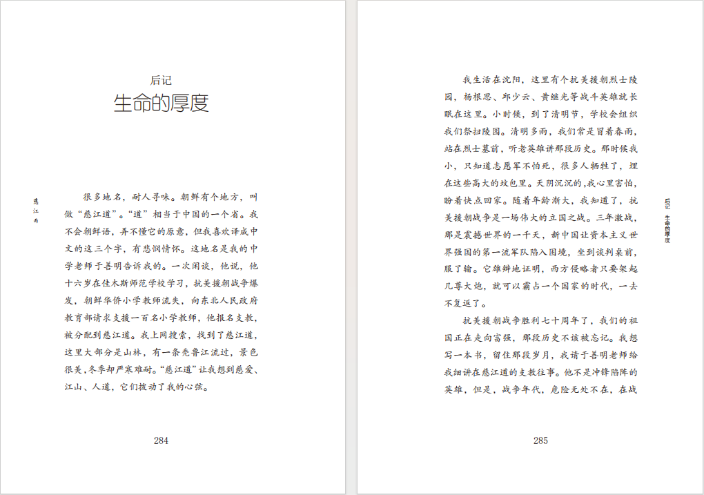 这样一种全景式的百姓视角之所以描写得如此生动、真实,产生强烈的历史现场感,源于作品创作源头所获得的珍贵素材。看马三枣后记中讲述,这是源自作家的老师于善明的真实故事,这位抗美援朝战争中的支教少年,如今已是90多岁的长者,这位荣获“中国人民志愿军抗美援朝出国作战70周年”纪念勋章的亲历者的讲述,构成了作品真实厚重的历史感。