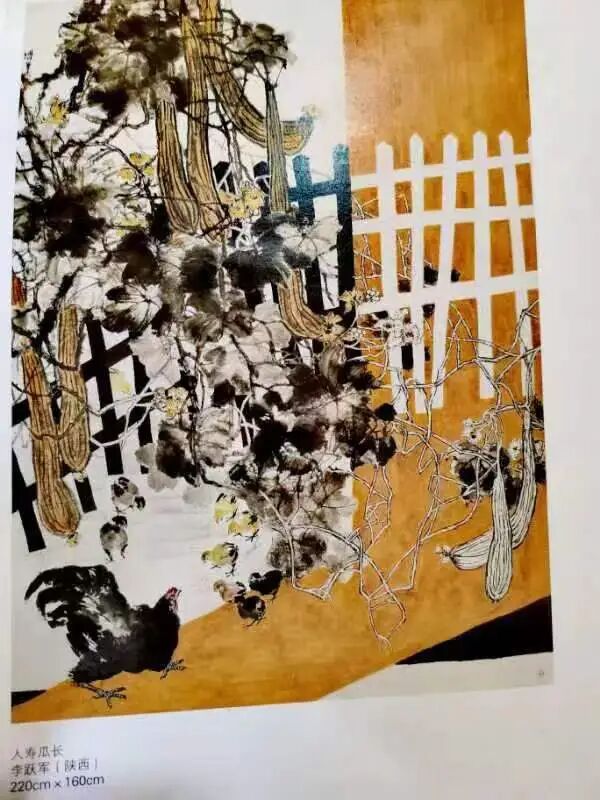 中国画,即“国画”。以国家之名命名一个画种,只有中国有,这是对一种画风上升为“国粹”的最高礼遇,也是国画区别于他画风格的艺术界定。国画的本质是意象,西画强调形象,形象必须与现实对应,不画无现实情景的画。而中国画的魅力,却在于画心中之画,可以把现实山水间的各种事物联系起来,甚至远隔千里万里毫不相干的景色,画进一幅画里,使其浑然一体,创作出美感来。关于西画与中国画的相互借鉴、学习与渗透的问题,李跃军先生认为,可以相互学习,取长补短。国画要借用西画的光影、色彩技法,使画面更有立体感,墨色更加生动。这方面,他以不断的实践,结出了可喜成果。如他的山水画,就承袭了老师王中年先生的古为今用,洋为中用的艺术理念;在运用各种传统的皴擦、点染技法的同时,融入了西画的光影、色彩,特别是老师的龟纹皴及画水不画山等技法,创作出了有别于他人的可游、可赏、可居的山水画,尤其是对水的表达更具特色,成为“跃军之水”,可让人感受到水的清澈、透明,具有“映日”之功。这种效果,在他参加第十一届国展的入展作品《人寿瓜长》中就有较大突破,其中西相融的艺术探索,得到了专家、评委的高度赞扬和肯定。