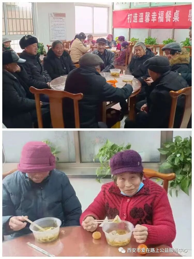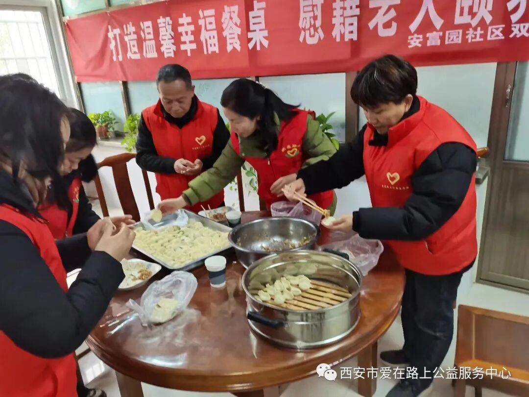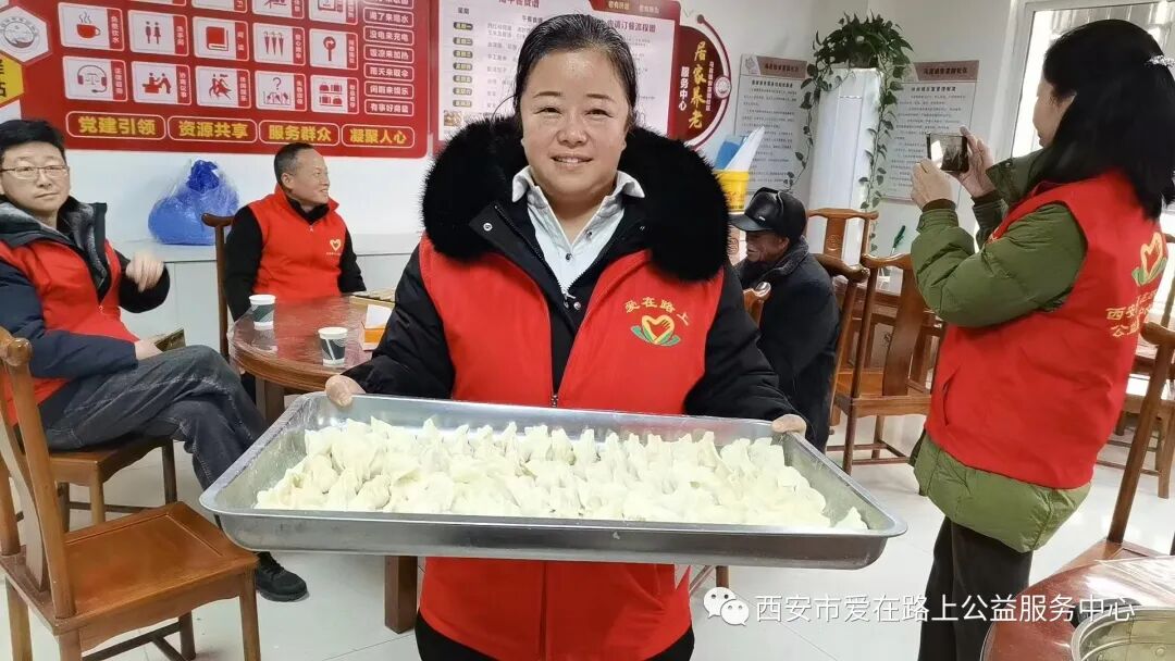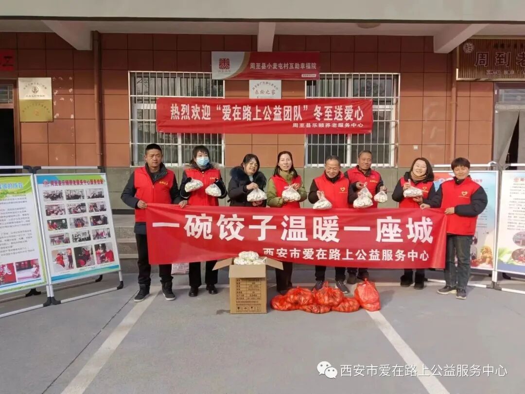 人间小团圆,冬至大如年。为了能让社区留守、空巢、残障老人感受到社会的温暖与关爱,12月22日上午,西安市爱在路上公益服务中心组织开展“一碗饺子温暖一座城”新时代文明实践活动,为100多名乡村老人送上爱心饺子,送上冬至的温暖和祝福。 活动第一站,志愿者们来到周至县广济镇小麦屯村助老餐厅,餐厅负责人陕西好人宋聪贤大姐热情接待了大家,并向志愿者介绍了助老餐厅运营和送餐情况。据了解,宋大姐的助老餐厅目前在周至已经建立了6个分点,,服务老人约200多位,对于失能半失能、行动不便的困难老人,每天安排专人上门三顿送餐服务,风雨无阻走过了整整8年,志愿者纷纷为宋大姐的仁爱精神而点赞和感动。“好人互助,今天我来的很值的,作为一名志愿者服务他人,快乐自己”来自陕西省西安市税务干部学校副校长的敬业奉献陕西好人任志文校长感触颇深。 活动第二站,志愿者来到马召镇安富园社区,这是公益组织特别关注的扶贫移民易地搬迁安置社区,社区涉及周至县7个乡镇44个自然村的搬迁群众,作为社区双委的郭仪荣书记,带领社区工作者尽心尽力,用心用情为群众服好务,当好家。交流座谈中,志愿者了解了郭书记和社区工作者遇到的各类问题和解决过程中的坎坎坷坷,进一步理解了社区工作的不易和艰辛,公益组织负责人赵芳表示,也将链接更多的资源为社区提供帮助支持,助力社区治理,全力营造幸福和美的社区氛围。 餐厅内欢声笑语,热闹非凡,志愿者热情满满、有说有笑地开始忙活包爱心饺子,在锅碗瓢盆碰撞声中,形态饱满的饺子就摆满了桌子。老年居民们像家人一样围坐在一起聊着家常,有说有笑,沉浸在愉快的氛围。 当热腾腾的饺子送到老人们手中时,他们脸上洋溢着满满的幸福与感动,“这饺子真香,”、“今天的饺子馅真美”老人们赞不绝口。个个脸上笑开了花。 一碗热气腾腾的水饺,传递的是社会对老人们的关爱。一份简单的爱,映射出这座城市的温度,我们一直爱在路上!