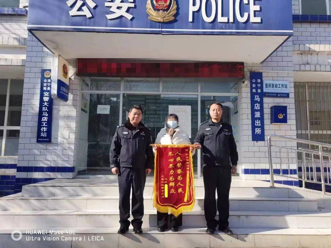 12月25日,吕某某携家人将一面“人民警察为人民 尽心尽力为群众”的锦旗送到洛宁县公安局马店派出所,感谢民警及时破案,为其家鹅被盗挽回损失。