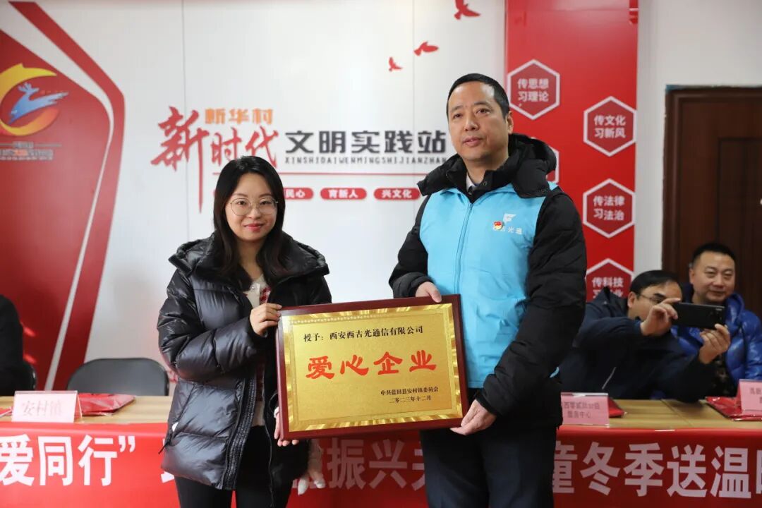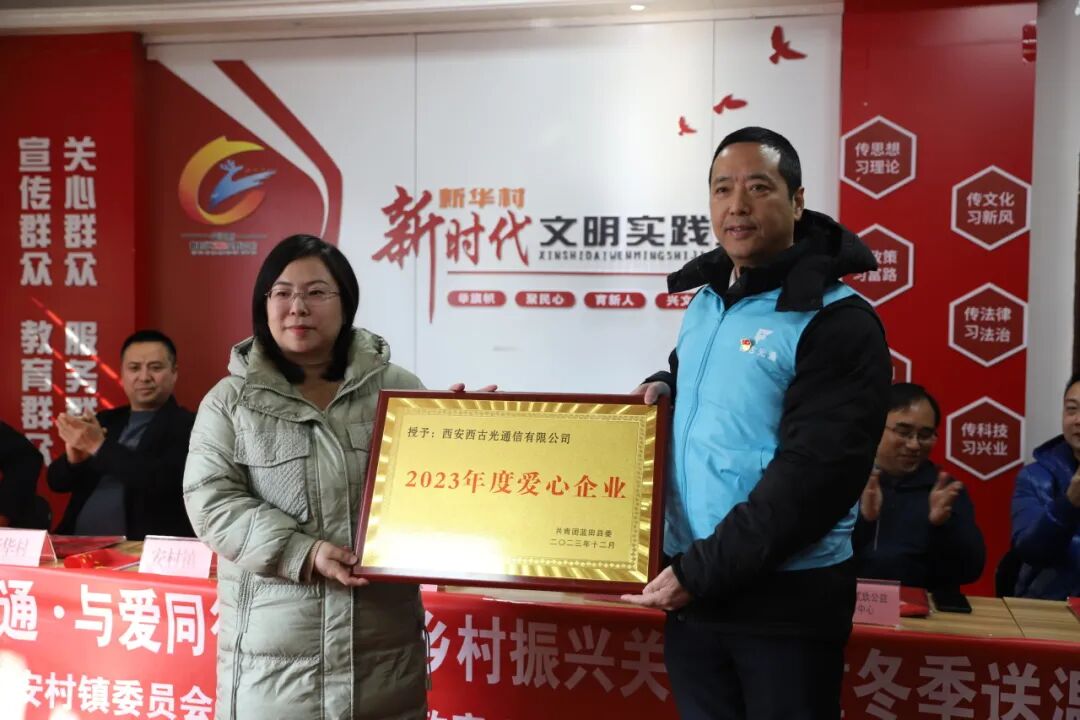 安村镇镇长为西安西古光通信有限公司颁发荣誉牌