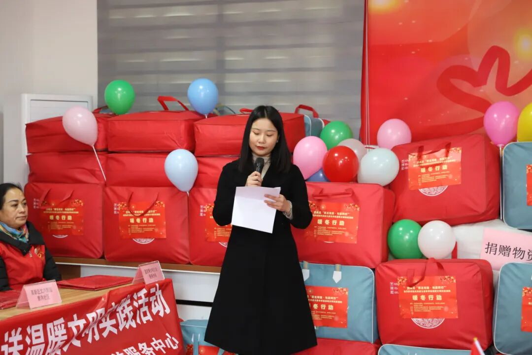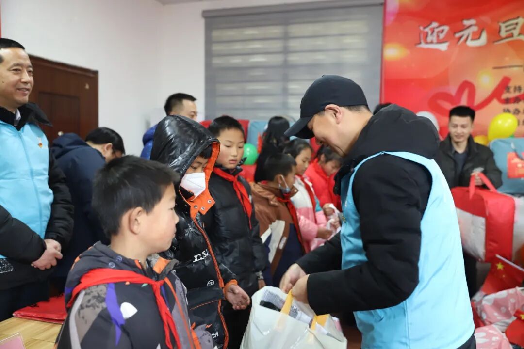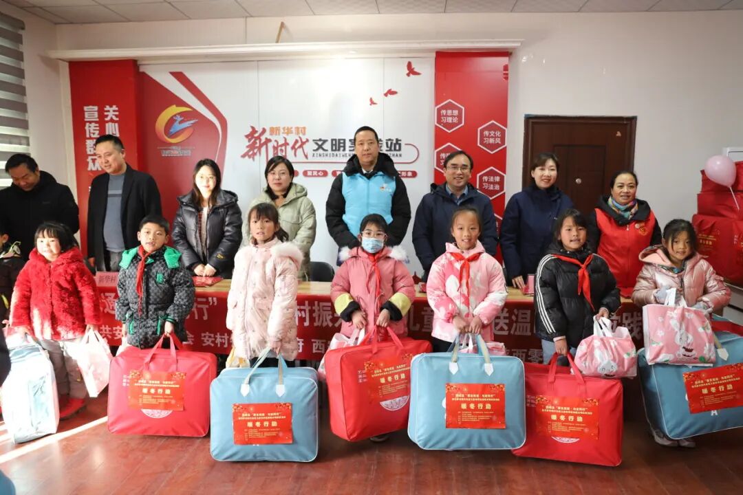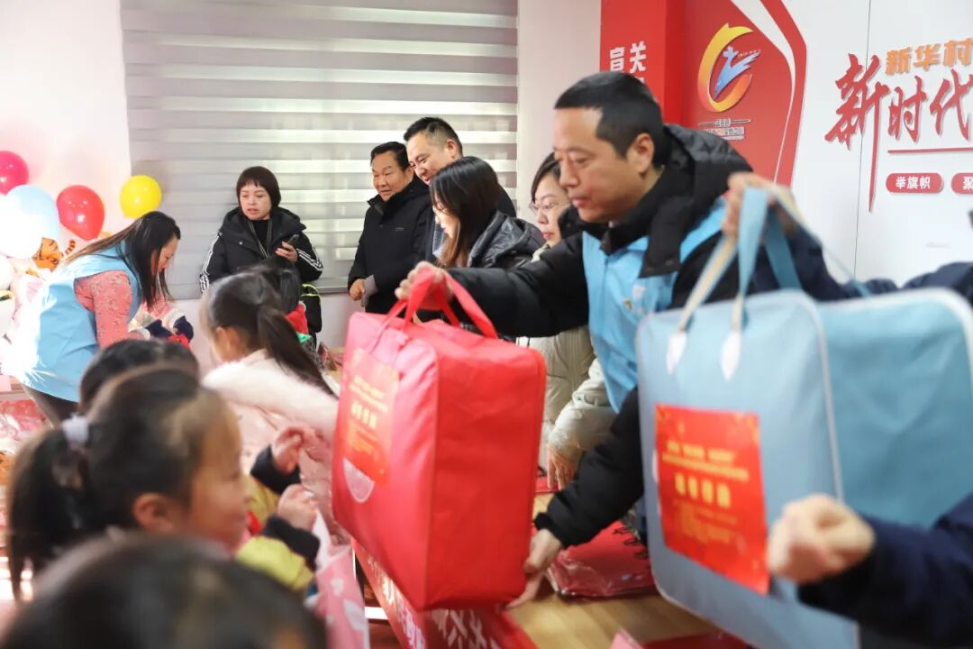 领导们带领着志愿者为现场 40 名儿童代表发放棉被、保暖围巾、手套、棉帽、棉鞋等爱心物资,并给予他们鼓励和肯定,这些暖心礼包将为孩子们度过寒冷的冬季提供保障,而爱心企业与志愿者们用自己的爱心和关怀,给予了这些孩子们更多的关注和教育机会。