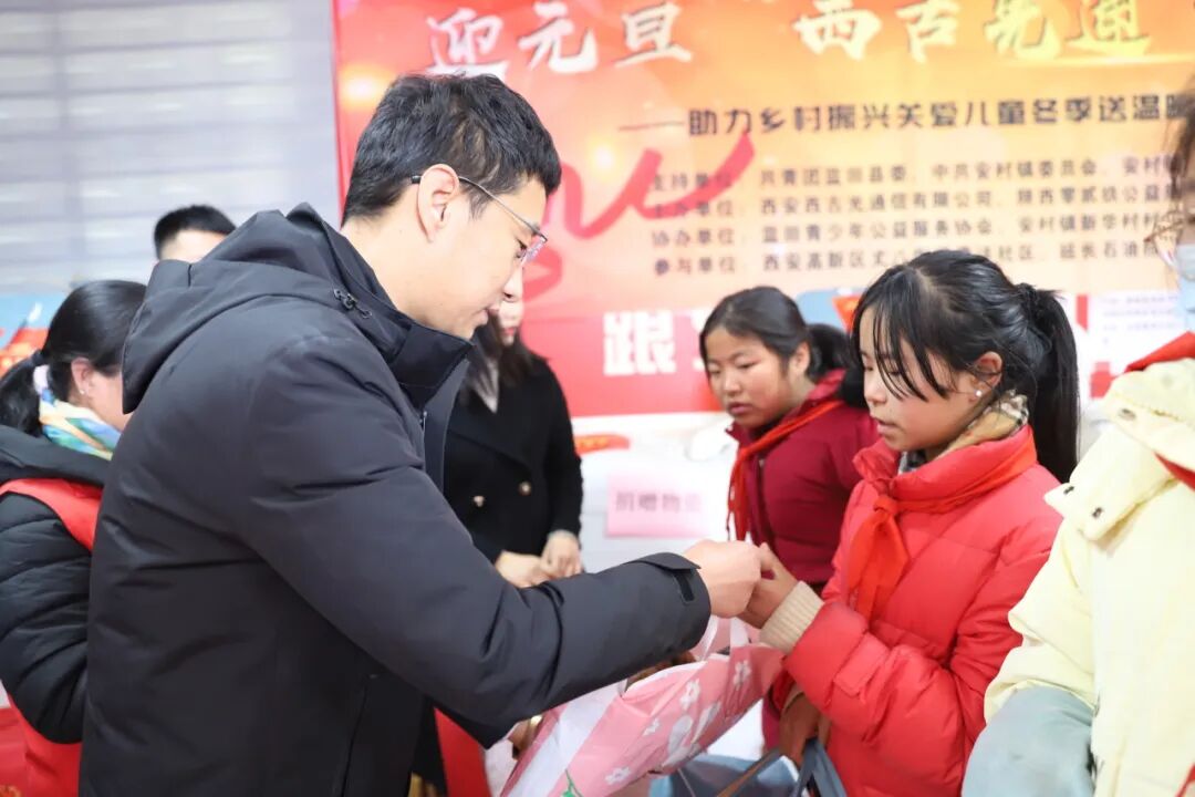 西安西古光通信有限公司副总申春磊在讲话中表示,乡村儿童是我们的未来,他们的健康成长是我们最大的愿望,多年来始终心系社会持续热心公益,近年来积极响应国家号召,着重关注青少年儿童健康成长的教育问题,主导设立康蕾计划关爱留守儿童公益项目。寒冷的冬季对于乡村儿童来说尤为艰辛,因此我们希望通过这次活动,为他们送去温暖和关爱,同时,企业也将继续积极履行社会责任,为乡村儿童提供更多的帮助和支持。