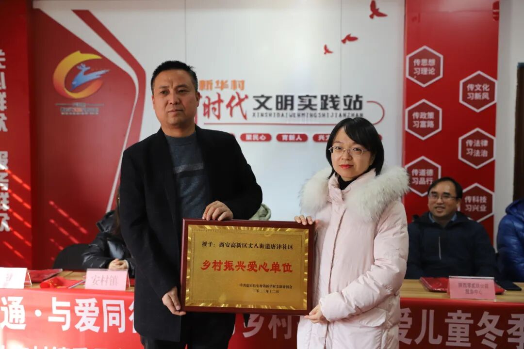 新华村书记为高新区丈八街道唐沣社区颁发荣誉牌