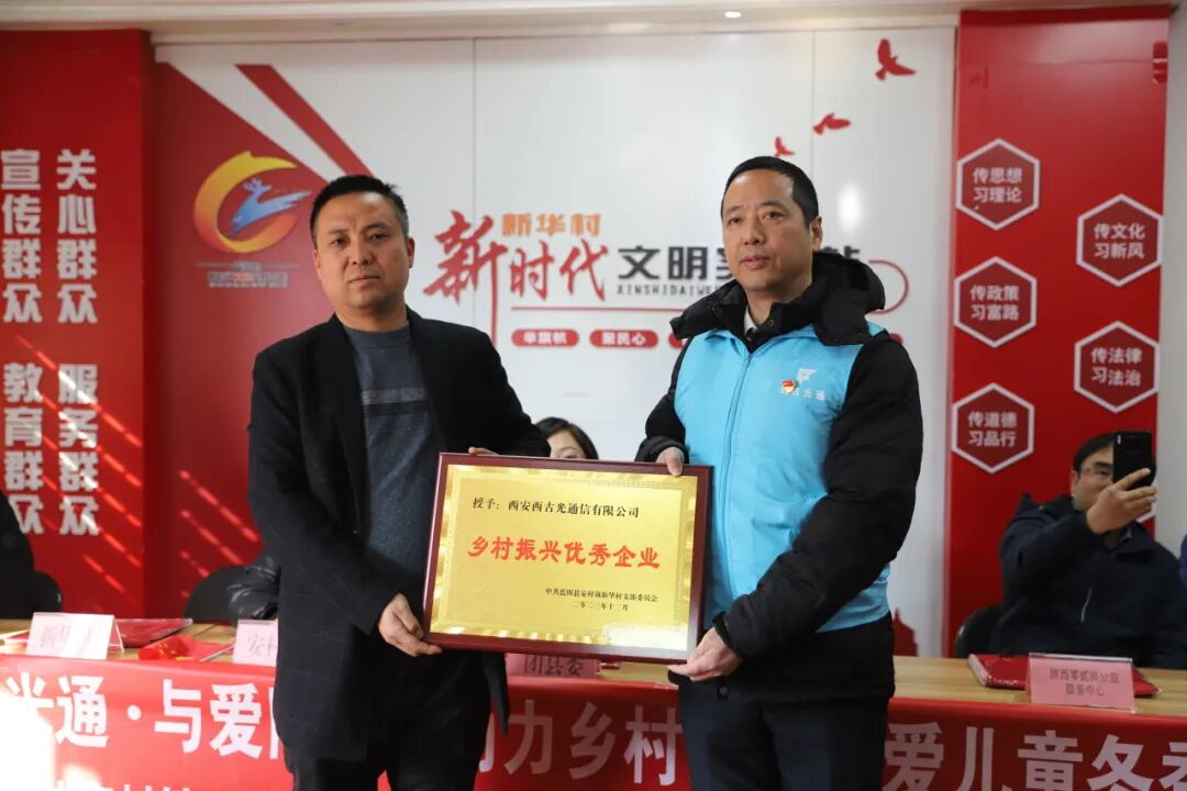 新华村书记为西安西古光通信有限公司颁发荣誉牌