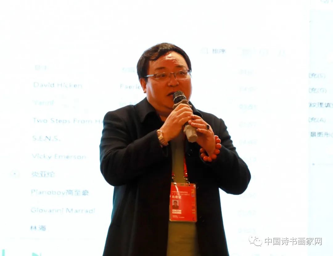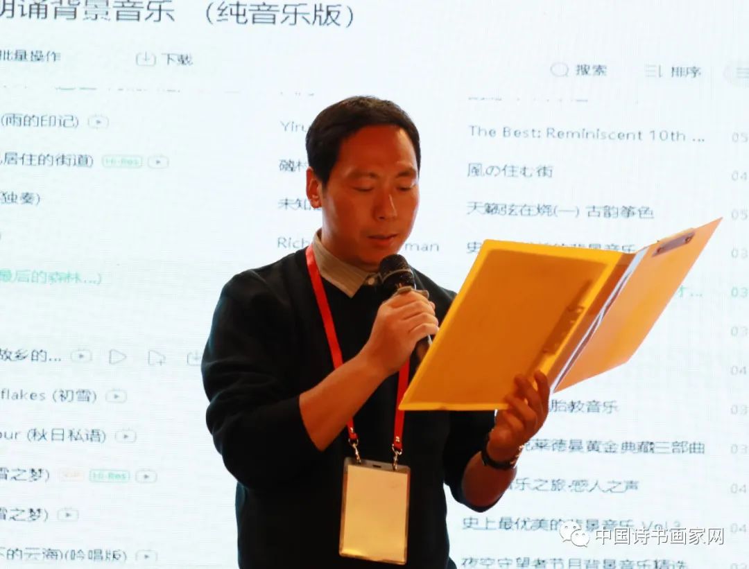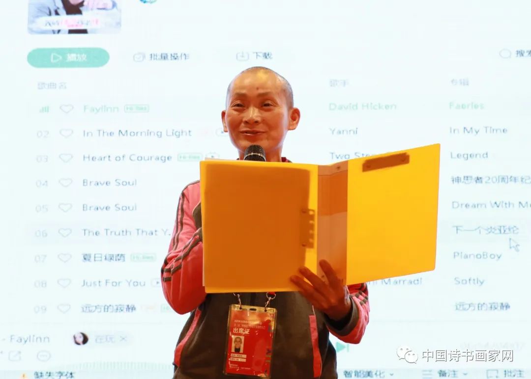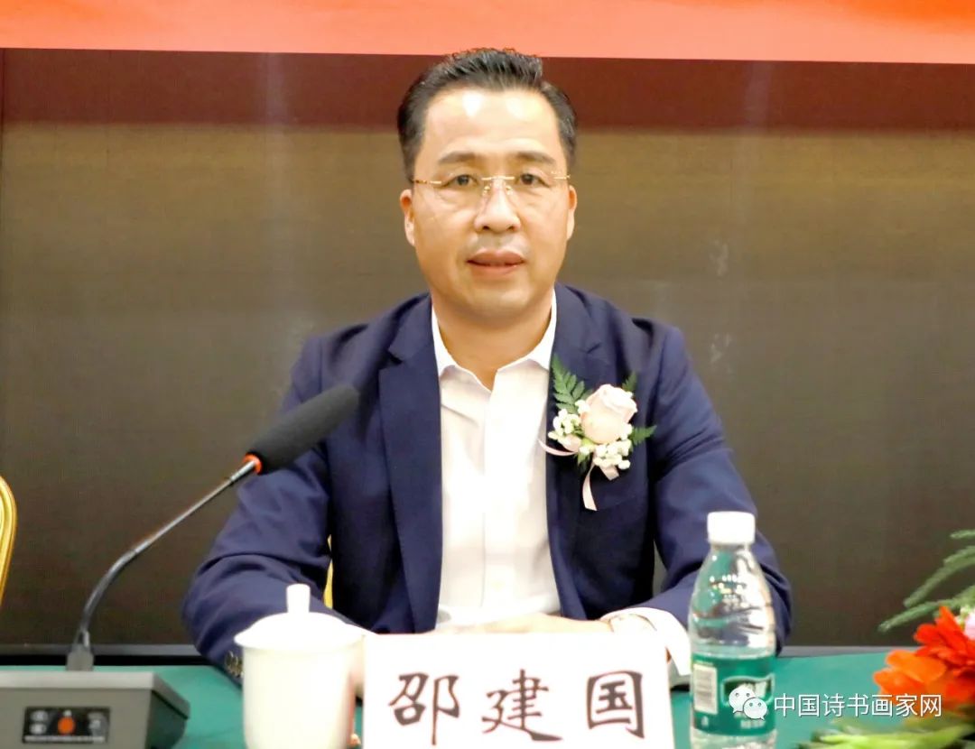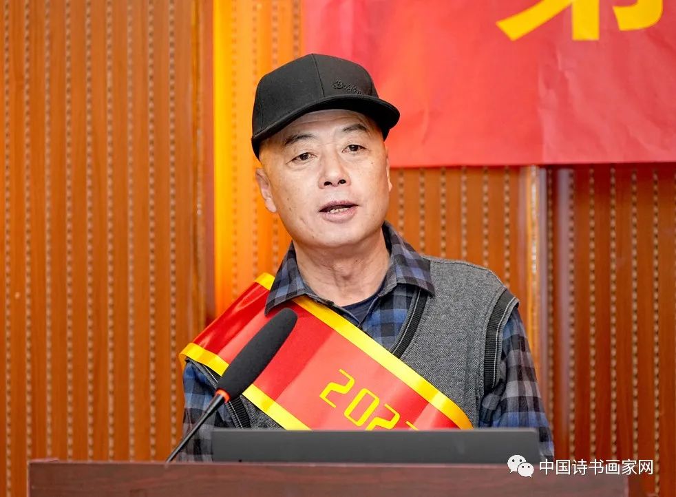 中国硬笔书法协会副秘书长兼工会副主席、中国诗书画家网总编辑邵建国在主席台