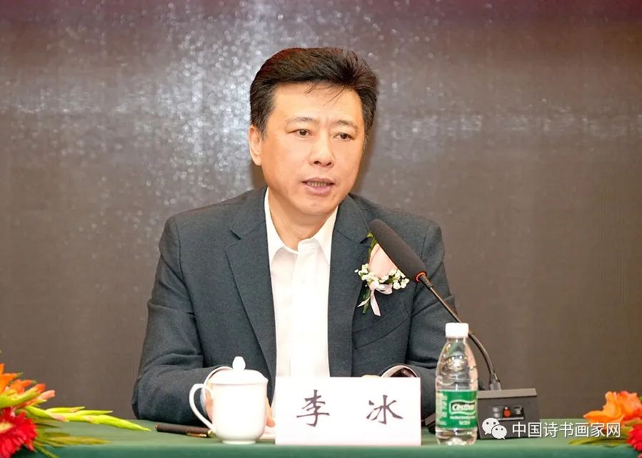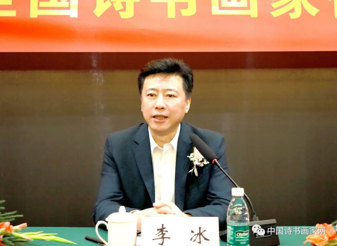 中国硬笔书法协会党支部书记、驻会副主席兼秘书长李冰在讲话