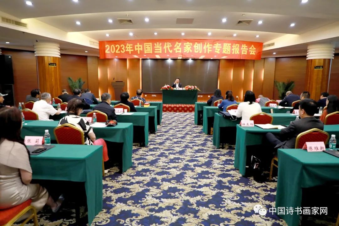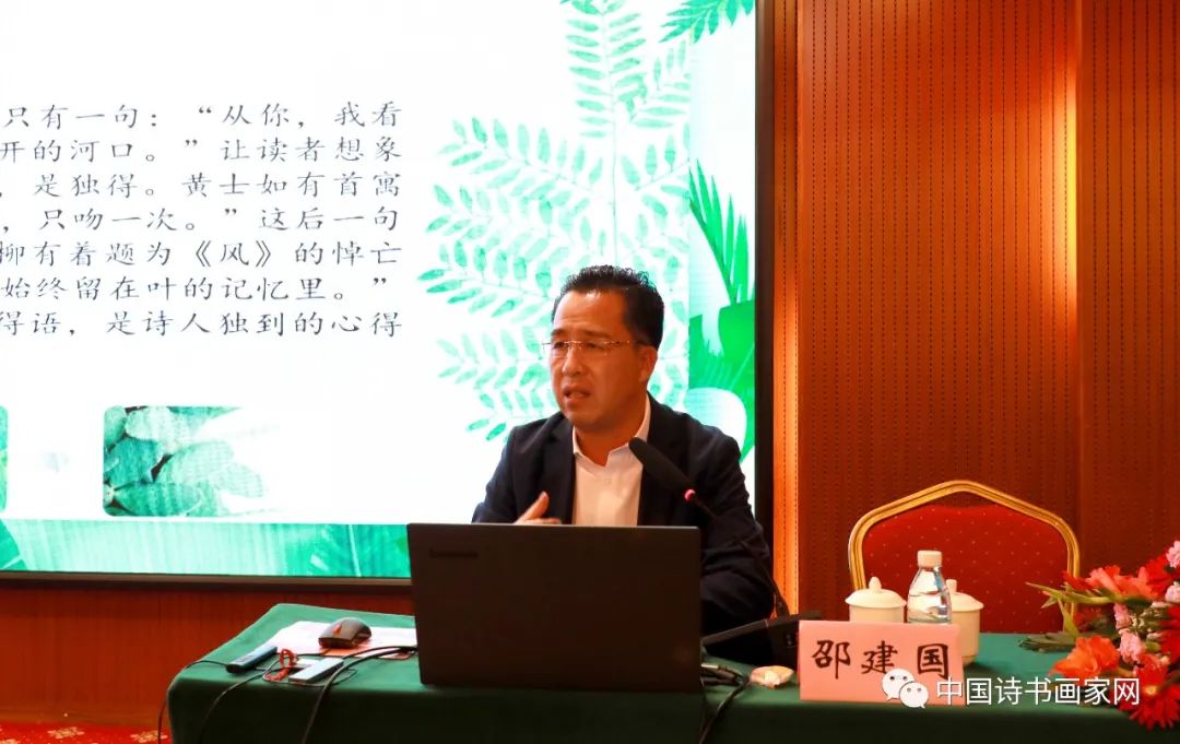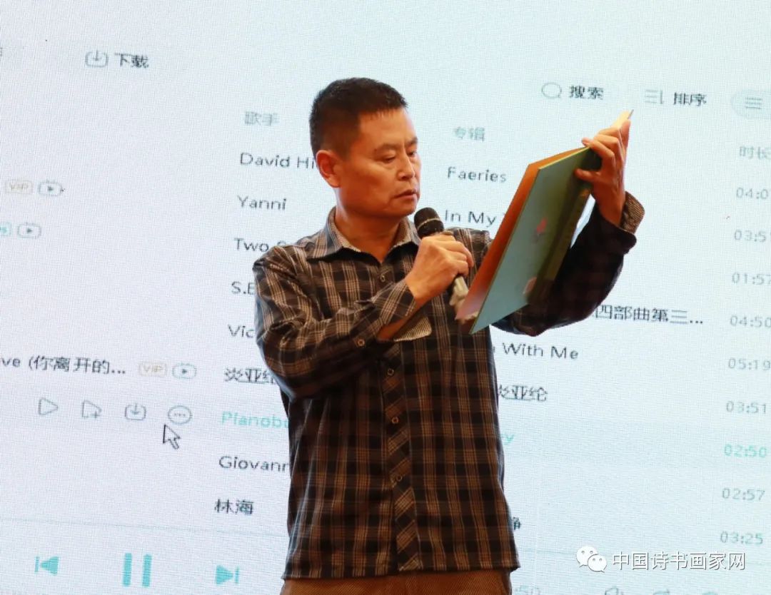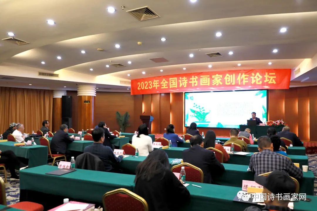 12月23日晚上举行了2023年全国诗书画家创作论坛,来自全国各地和新加坡的参会代表充分交流了创作体会和创作心得,并观摩书画作品。福建省的邹素英、贵州省的邹帮起、吉林省的柴秀梅、江西省的占帝佑、四川省的康志、江西省的高爱莲、甘肃省的马进霄、广东省的顾品江等与会诗人在优美的乐曲中深情地朗诵了自己的代表诗作。中国硬笔书法协会副秘书长兼工会副主席、华夏开明书画院院长、中国诗书画家网总编辑邵建国从自身创作的经验出发,结合丰富的文学理论知识和创作案例,用诙谐幽默的语言、深入浅出地娓娓道来,为大家献上一场精彩的高质量诗歌讲座。