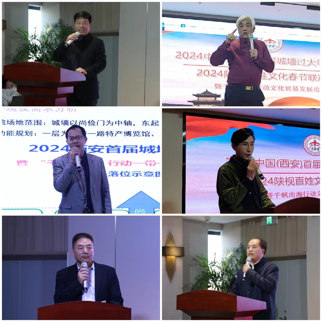 【CCTV-TIME央媒时代TOP中国时代周刊中国品牌万里行金光大道新视界央媒网共同关注】日前,2024中国(西安)首届城墙过大年文化节、陕视百姓文化春节联欢晚会、千帆出海行动文化贸易发展论坛在西安解放饭店举行盛大启动会。CCTV-TIME央媒时代产业创新发展促进中心将大力支持春节前在西安举办的这三大活动。北京领导代表组刘彬,中国西安首届城墙过大年文化节总指挥滕永保、副总指挥崔峰,中国名家书画院院长、本次活动总顾问马玉平,陕西广播电视台导演、陕视百姓文化组委会主席、中国西安首届城墙过大年文化节总导演贺一凡,千帆出海行动组组长、千帆出海行动发展论坛组委会主任刘彬,陕北13区农特产吕爱湄和本次活动的律师顾问白文军等领导嘉宾200多名各界人士参加活动。
