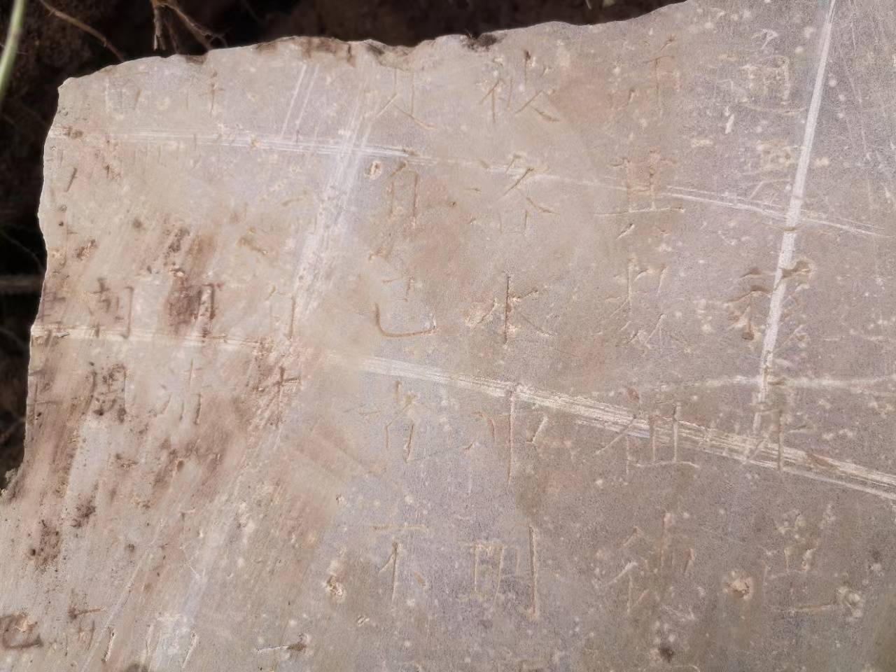 这个消息引起我的重视,家庙碑一般会记录本族重要的历史事实,我立刻寻找,由于位置不清晰,加上荆棘丛生,开始没有找到,等到冬季叶落我再次找寻,终于在地下找到了那方石碑。
