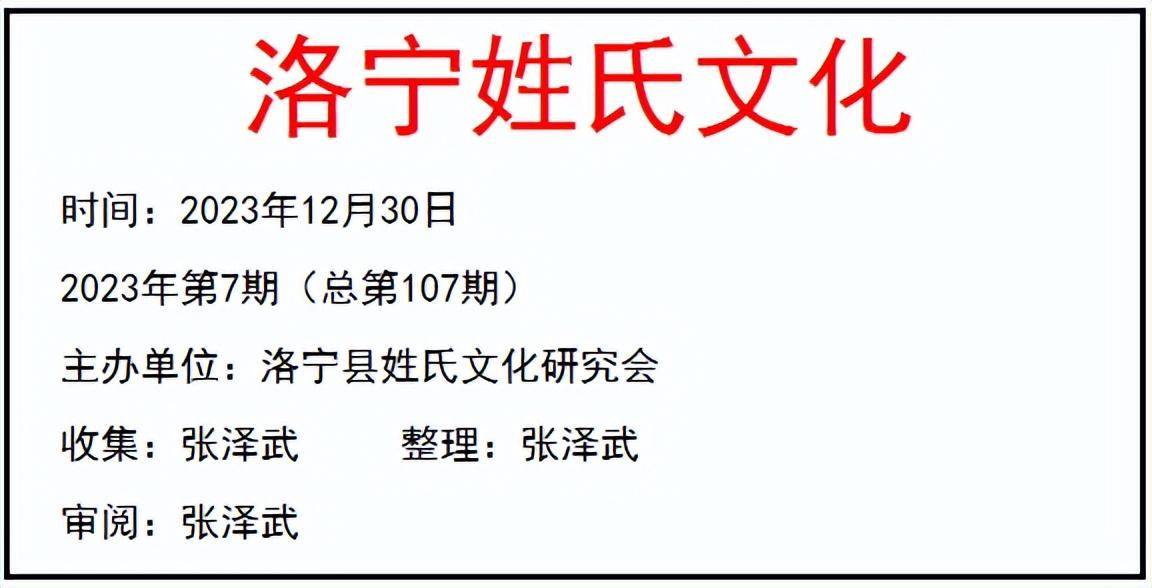 作者简介:张泽武,洛宁县陈吴乡新寨村人,2003年发起并组织成立了洛宁县姓氏文化研究会,任常务副会长兼秘书长。2006年参与组织筹备成立洛阳姓氏文化研究会,任副秘书长。2017年被推举为洛宁县姓氏文化研究会会长。