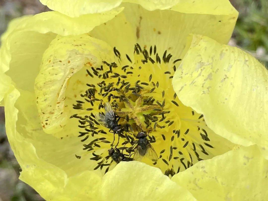 毛茸茸的叶子和茎好像穿了一件毛衣一样,蝇子在宛如莲花的花苞里嬉戏。没错是蝇子,在这里请不要用人类好恶的眼光,去判断一个生物,它们的一切都是为了存活下去。你要明白在严酷的自然环境下能够生存的昆虫少之又少,它们是高原花卉的传播者,我们要为它们顽强的生命力而赞叹。