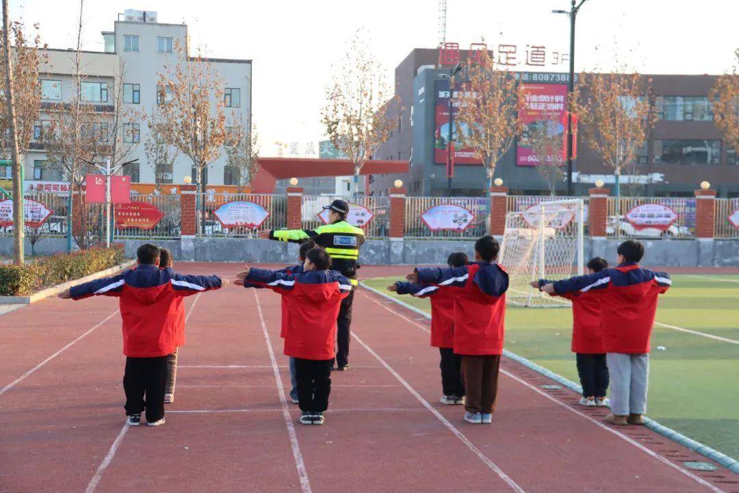 宣讲结束后,民警通过交通安全知识问答的形式,亲切地与孩子们互动,通过一问一答为孩子们送上学习小礼品。活动最后,民警现场教学,带领孩子们学习交通指挥手势。孩子们热情高涨、兴致勃勃,一个个神气十足,俨然像个“小交警”,认真学习着每一个交通指挥手势。