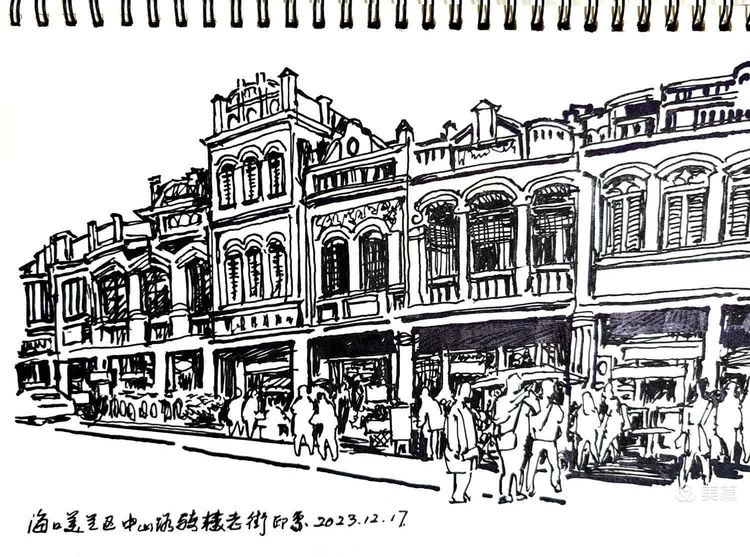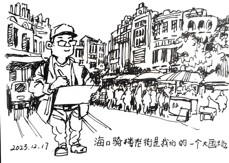 我们画骑楼时,有不少人围观,也有人与我们交谈。不管怎么说,这对我都是一种享受。