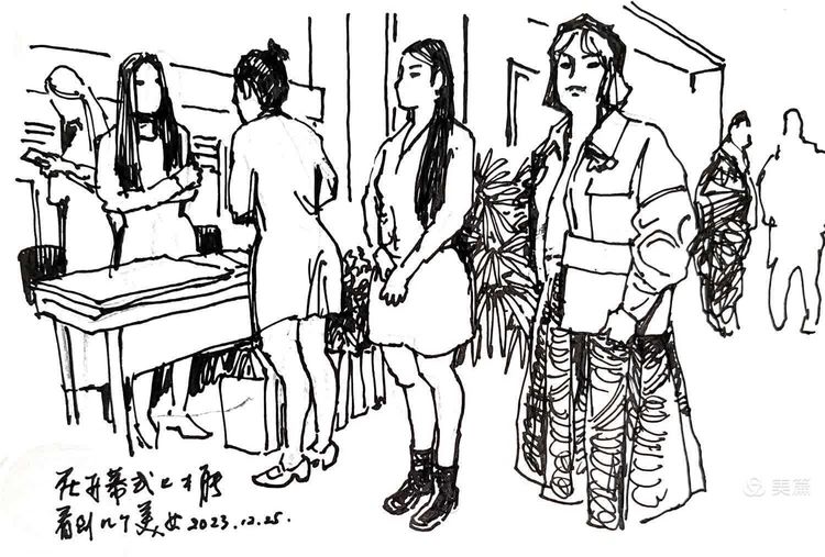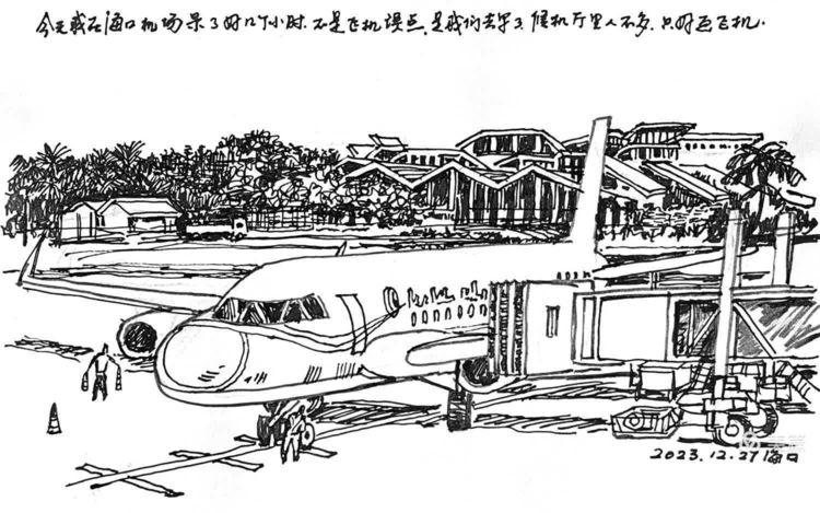 王老师的女儿提前把我们送到机场,我打发时间的办法就是画速写。候机的人不多,我就画飞机。平时真的没有机会这么近看飞机,画飞机。