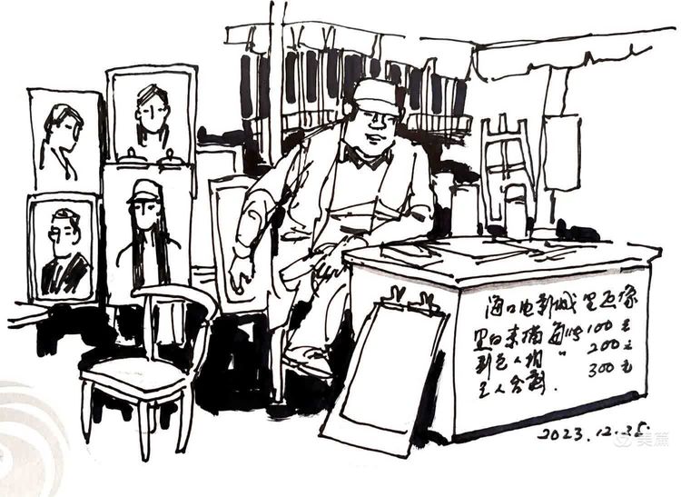 在海口电影城里看到一个画像摊子,摊主基本上都是闲坐着。从标价上看,似乎也不贵。我在公园里义务给人画像时,不时有人问我,多少钱画一张,可见这里画像的人不多。