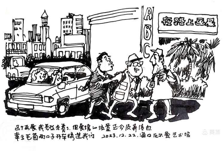 这个画展虽然看了,但这个展馆在海口的什么位置,至今没有搞清楚。幸亏有毛茵两口子接送,否则这个画展就看不成了。
