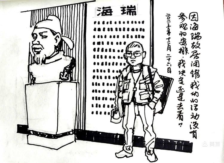 海瑞的故居不知为何关门了,我们团队没有游览的安排。我利用逛街的时间去看了一下。好在故居的有些地方还可以参观,请别人为我拍了几张照片。