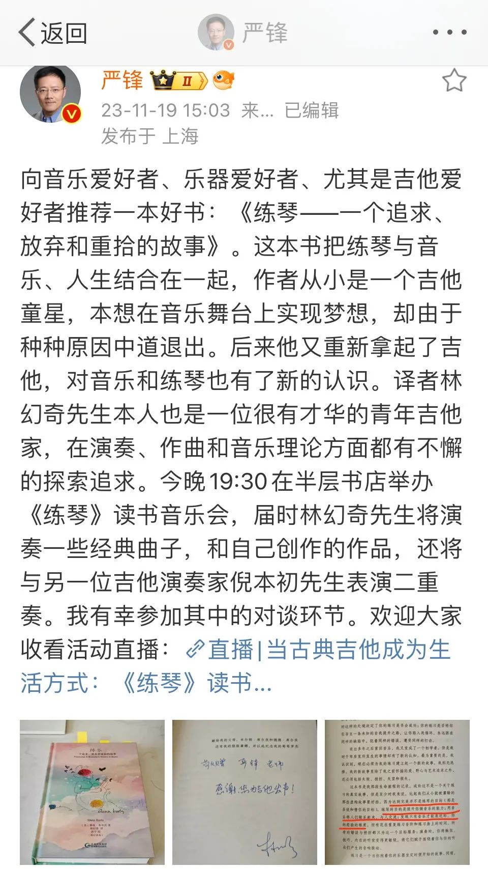 新书《练琴》读书音乐会