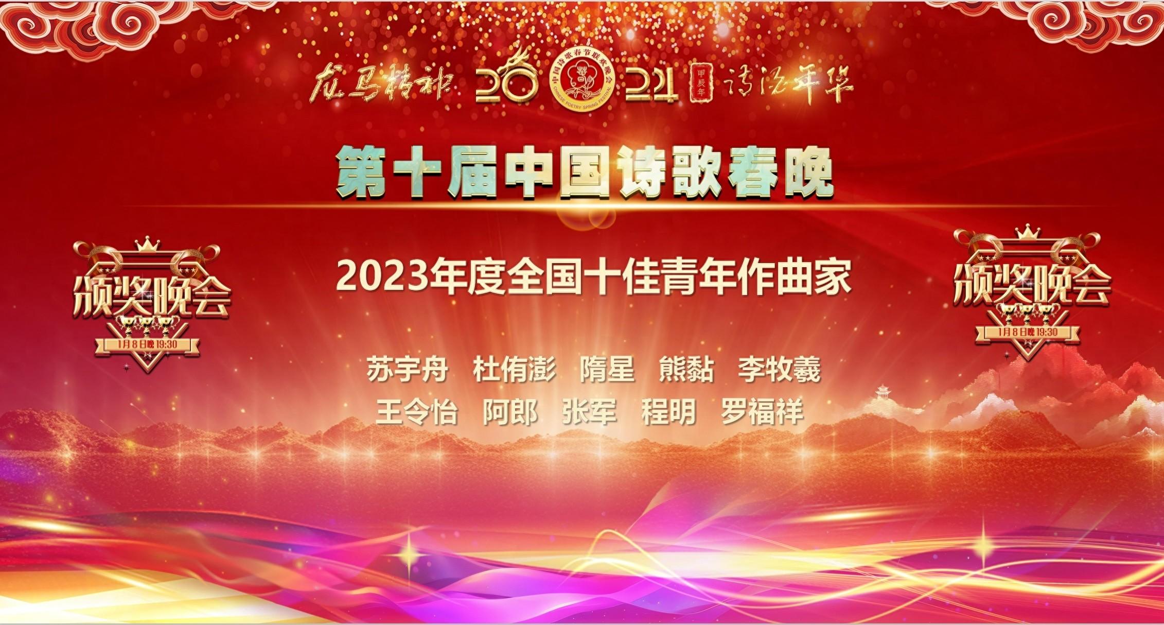 备受关注的2023年度诗歌各类获奖名单在颁奖晚会上揭晓,青年作曲家熊黏榜上有名,荣获“2023年度全国十佳青年作曲家”称号。