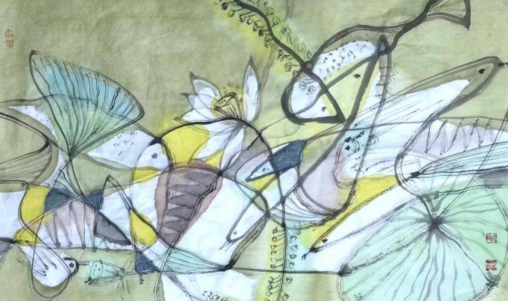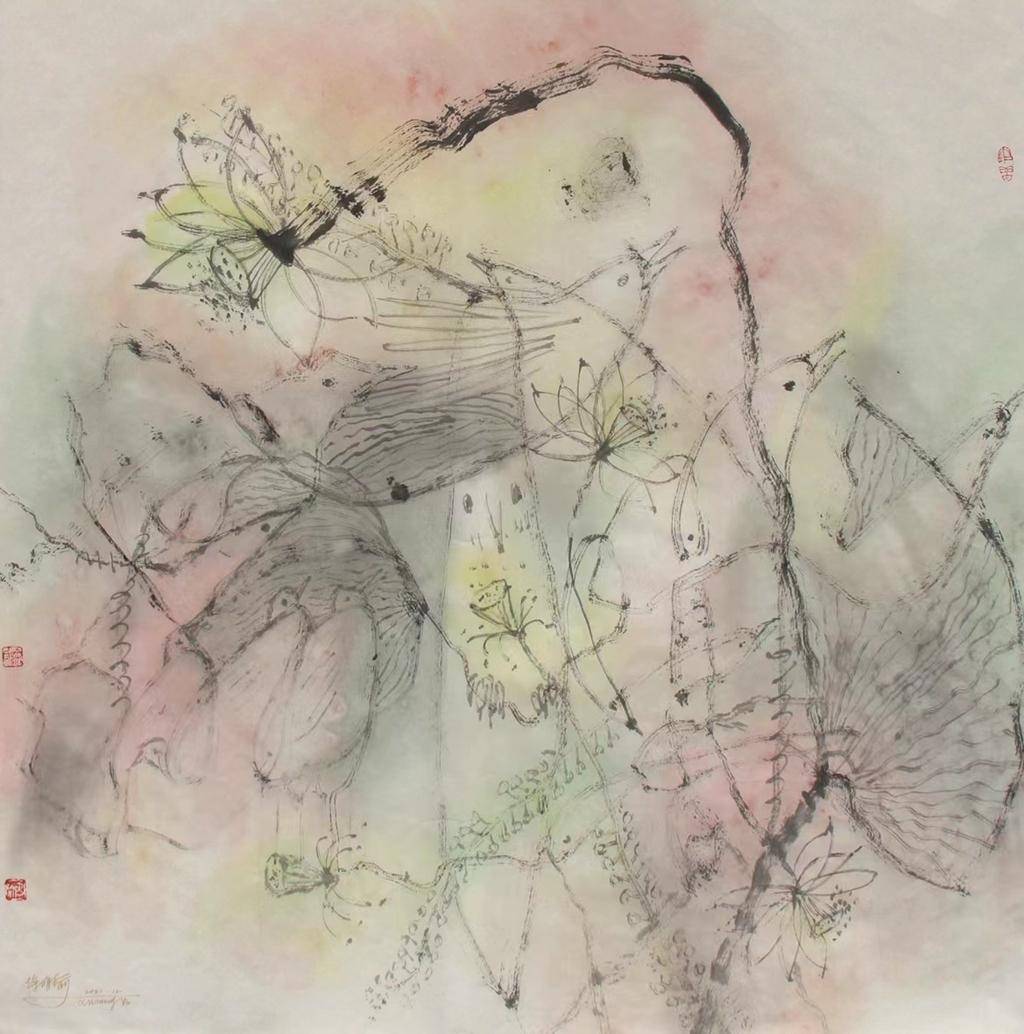 微风荡漾.68x68cm. 宣纸.墨.丙烯色.2020