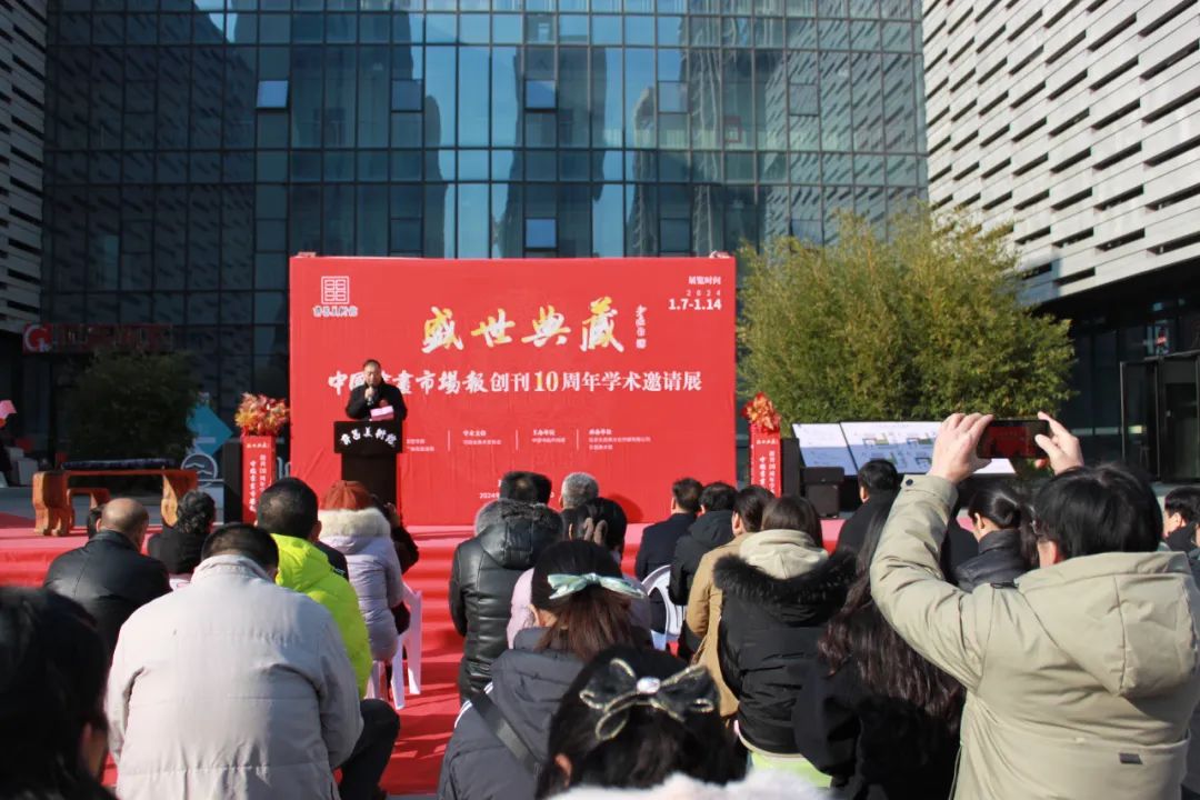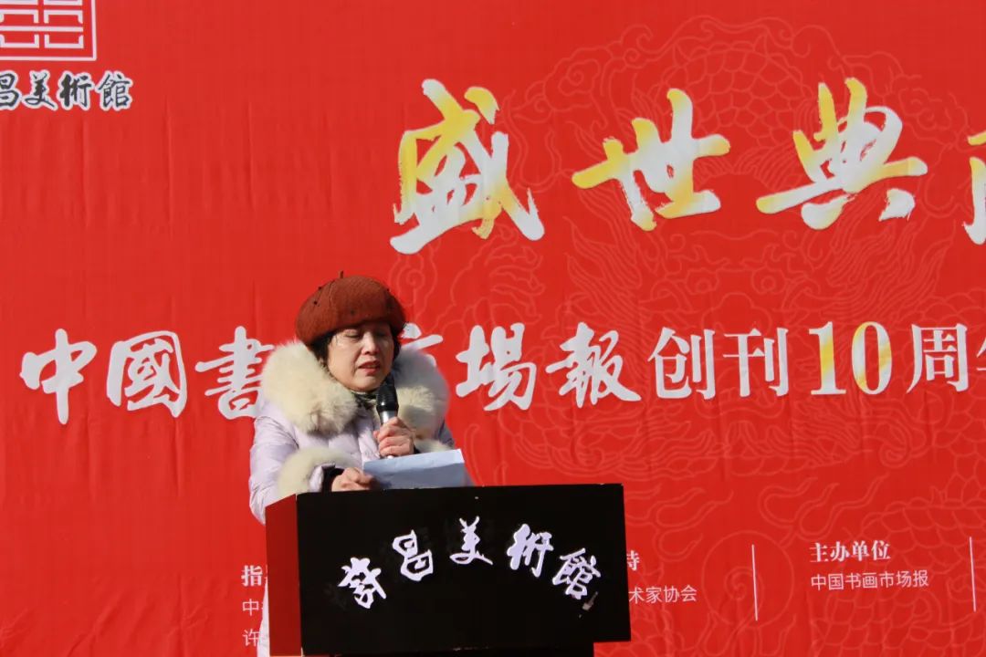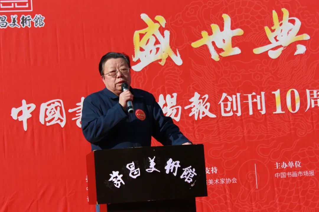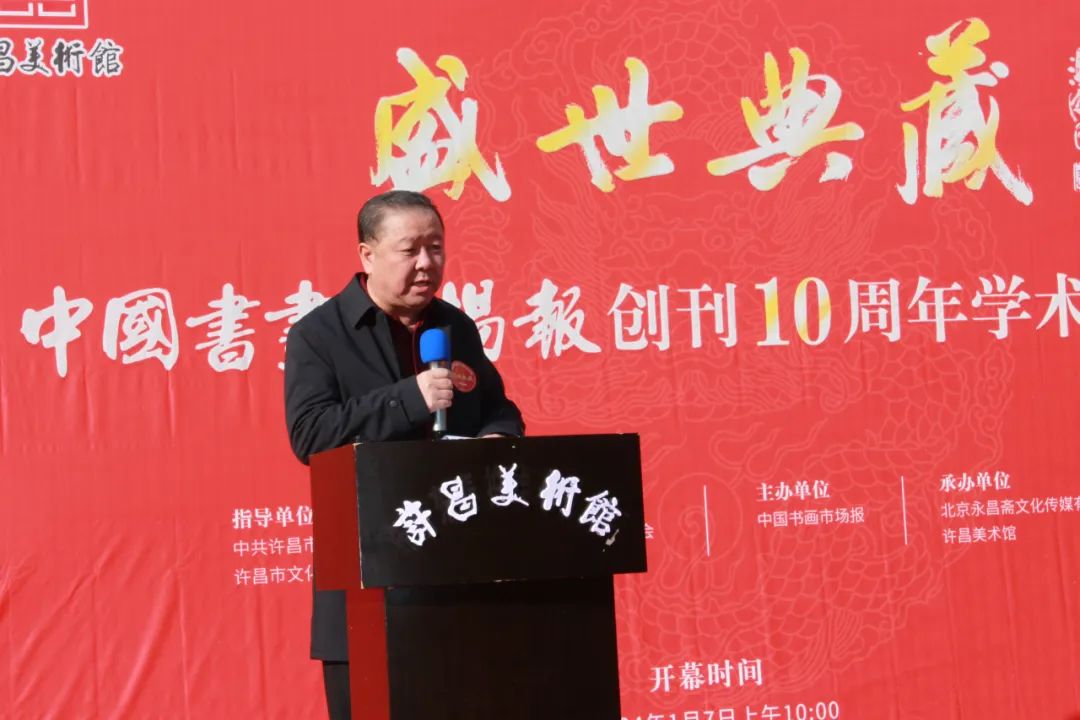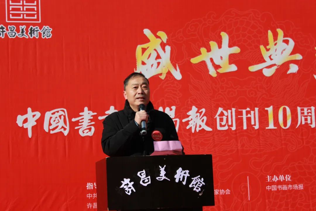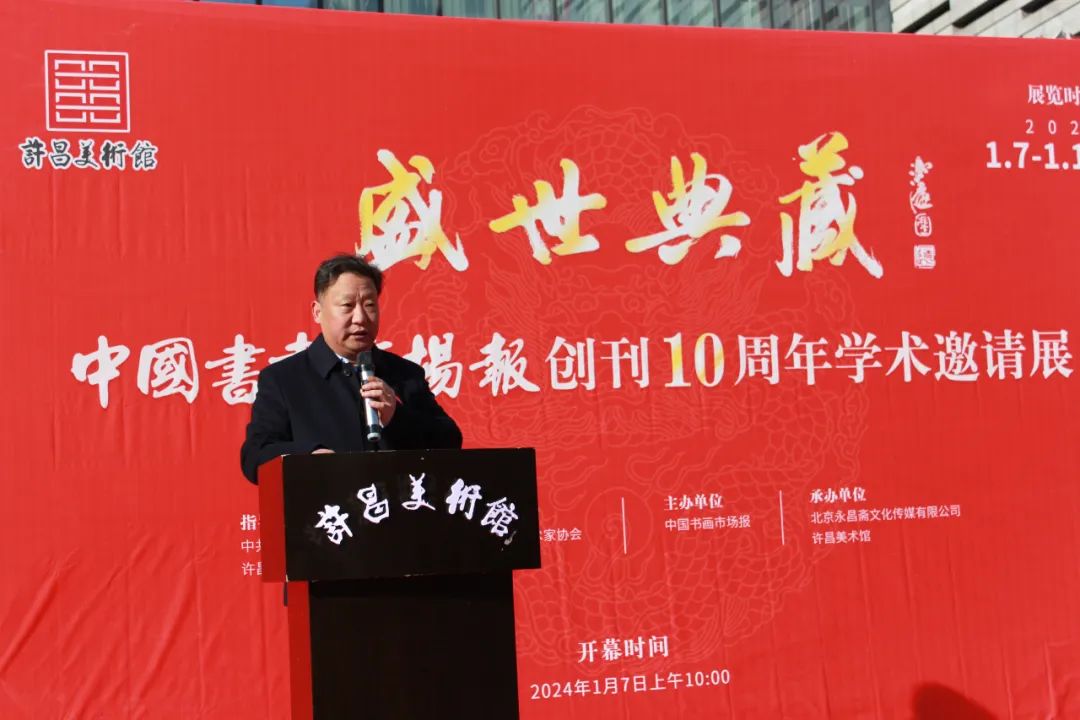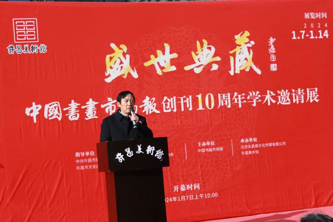2024年1月7日上午10:00,备受瞩目的盛世典藏----中国书画市场报创刊十周年学术邀请展在许昌美术馆隆重开幕。此次展览由中共许昌市委宣传部、许昌市文化广电和旅游局指导,河南省美术家协会学术支持,中国书画市场报主办,北京永昌斋文化传媒有限公司、许昌美术馆承办。旨在庆祝中国书画市场报创刊十周年,展示中国书画艺术的魅力与精髓,推动中国书画市场的繁荣与发展。