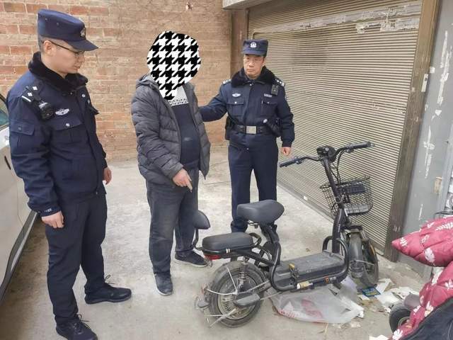 接警后,民警迅速赶赴现场。经调取视频监控,民警发现报警人电动车被一名穿黑色外套、戴着帽子和口罩的男子骑走。