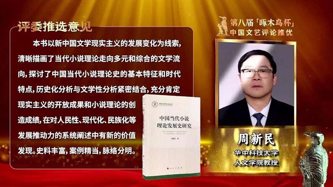 周新民获第八届“啄木鸟杯”中国文艺评论推优“优秀文艺评论著作”大奖