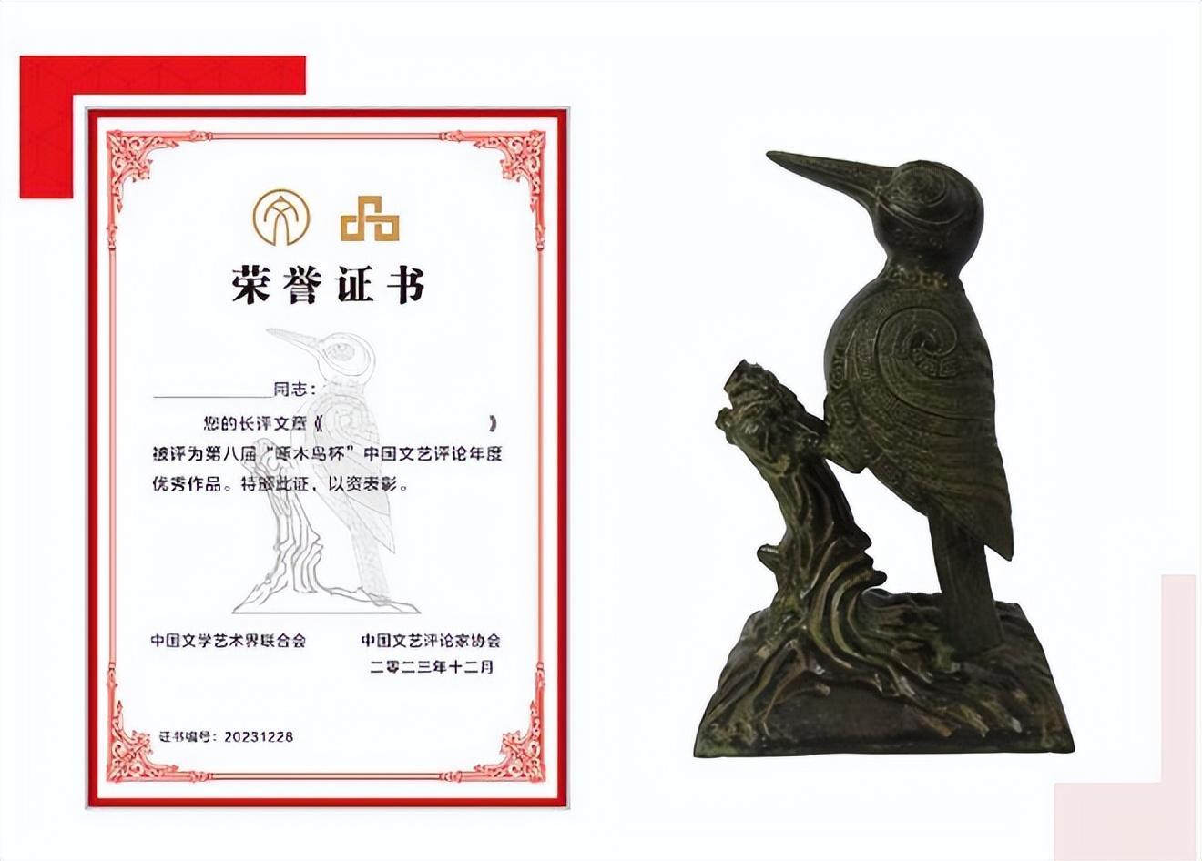 中国文联、中国评协于2016年起,举办“啄木鸟杯”中国文艺评论年度推优活动,表彰优秀文艺评论成果和人才,已连续举办七届。第八届“啄木鸟杯”中国文艺评论推优活动经过初评、复评、终评,推选出优秀著作5部、优秀长评15篇、优秀短评15篇。
