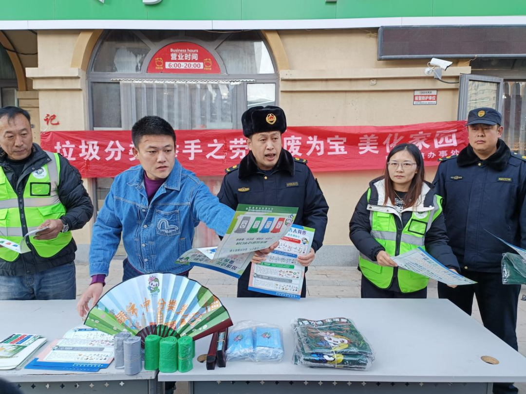 为进一步引导辖区居民树立绿色环保、低碳生活的理念,1月12日,陡沟街道垃圾分类工作人员联合执法中队以“黄河大集”为载体、结合“四下乡”,在玫瑰公馆开展有害垃圾分类宣传活动。