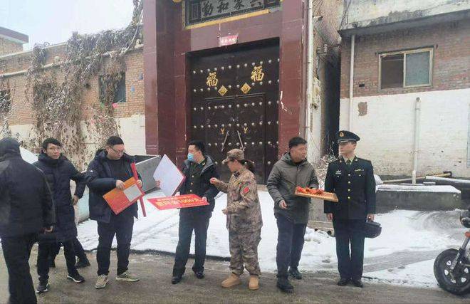 1月19日,96723部队代表、洛宁县人武部、洛宁县退役军人事务局、赵村武装部、赵村镇事务工作站及相关的工作人员一行,到洛阳市洛宁县赵村乡上陈宋村十组党海瑞家中,为其送上三等功喜报。