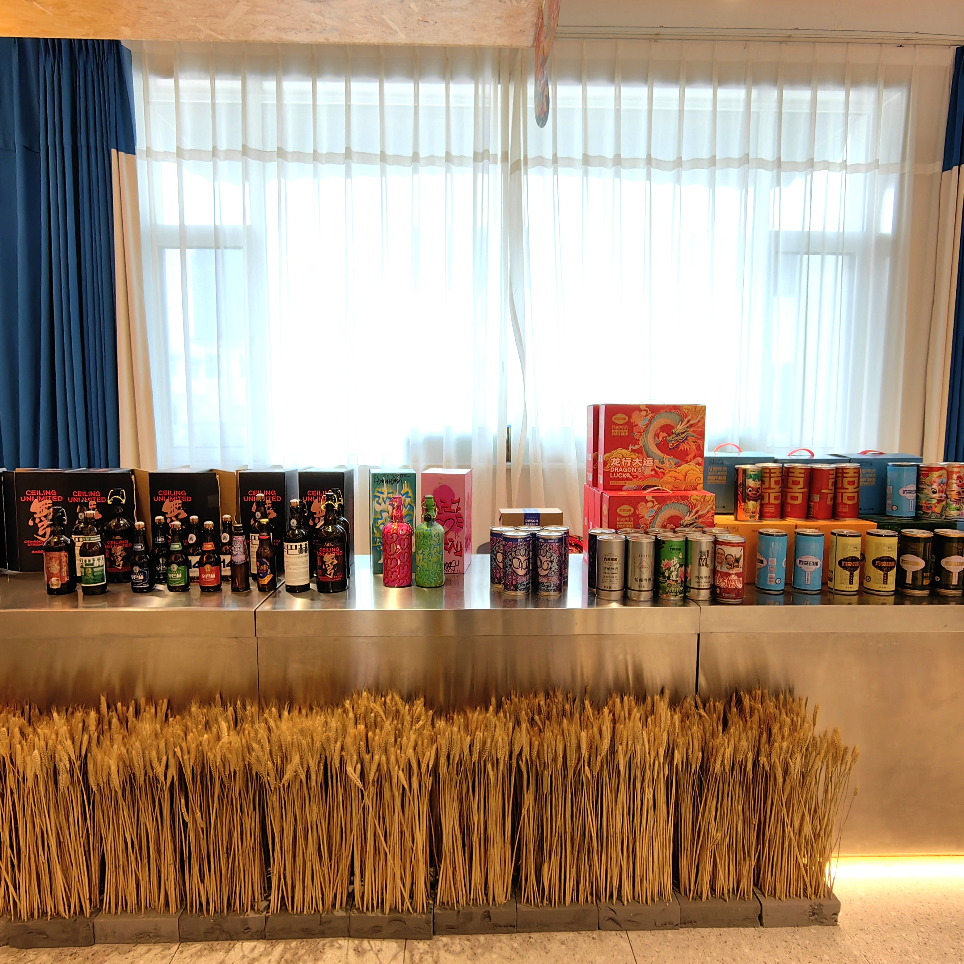 走进探九文化体验馆,门口右手边墙上的一幅啤酒花画,引人注目,淡绿色的啤酒花清新淡雅,好漂亮,还是第一次见啤酒花这种花,很是漂亮。左手边一面墙上一指禅取酒处,集中了探九精酿的16种直饮品牌酒,大门口对面的玻璃墙上印有啤酒发展史,公元前6000年啤酒起源于两河流域的美索不达米亚平原,1900年俄国商人在哈尔滨建立了中国第一家啤酒厂。玻璃墙右边悬挂着探九获得的各项国际大奖,这是探九人的骄傲,也是探九人不懈努力、孜孜不倦进取的结果,大厅布置的精致,有格调。