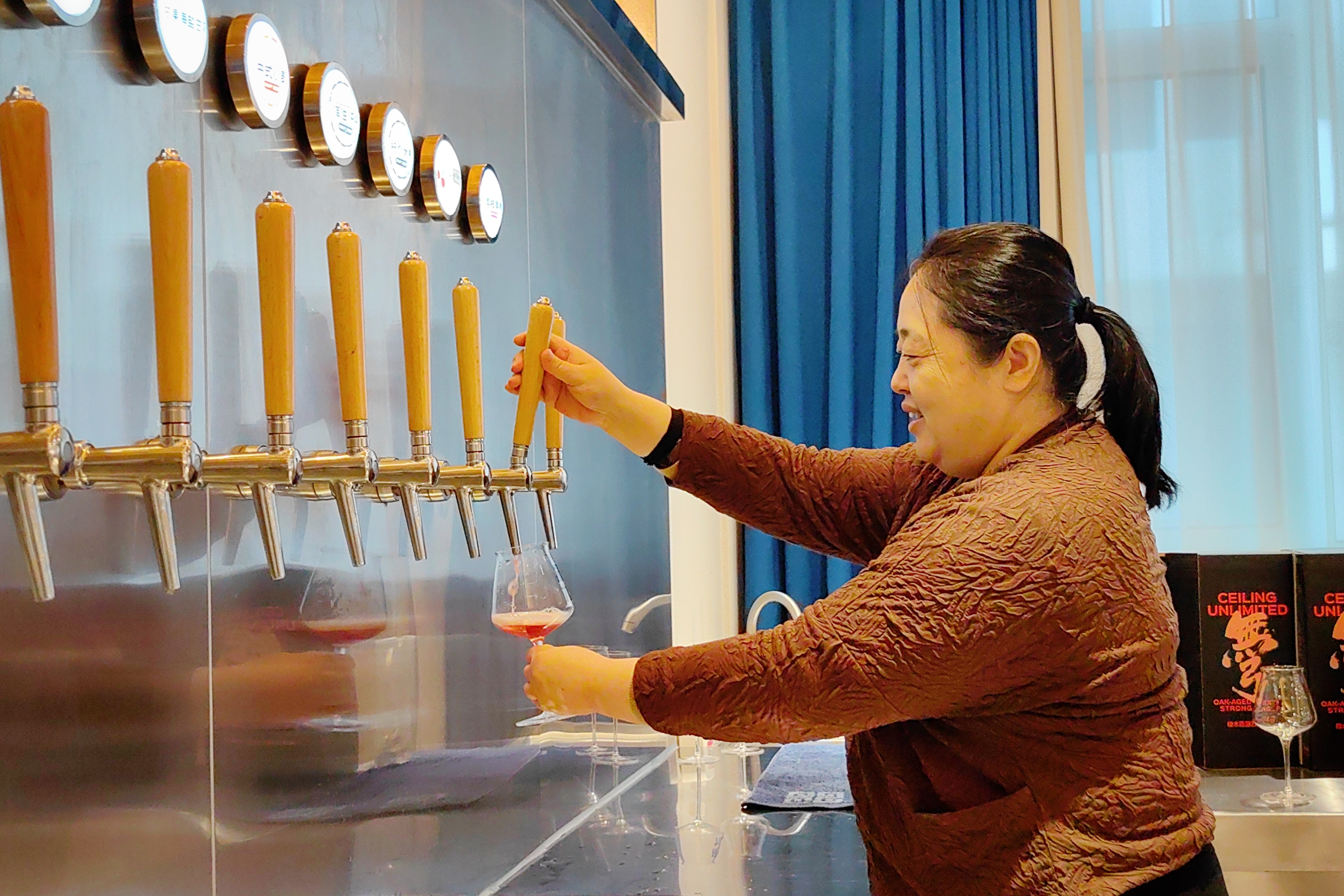 之前我并不喜欢喝啤酒,对啤酒苦苦的涩涩的味道不太感兴趣,这次品尝到探九精酿啤酒,完全颠覆了我对啤酒的认知,郭总热情地让大家多品尝几款不同口味的啤酒精酿,一指禅直饮的鲜啤有16种: 龙井小麦、荔枝果皮、杞个大枣、浑浊 IPA 、中式小麦、乳酸菌白挑、金色皮尔森、芒果低醇、苹果西打、定制 IPA 、比利时小麦、功夫麻椒、牛奶世涛、燃烧 IPA 、淡色艾尔、德式小麦。16种直饮精酿要是都品尝一遍,对不胜酒力的人,会飘飘欲仙。优雅的聚餐环境,高端大气的探九精酿体验馆,是朋友聚会,商务洽谈的好地方,1L罐装的趵突印象、瓶装的啤酒精酿都是送亲朋好友的高端啤酒。
