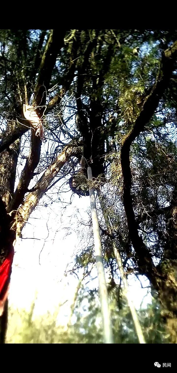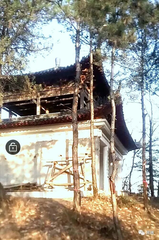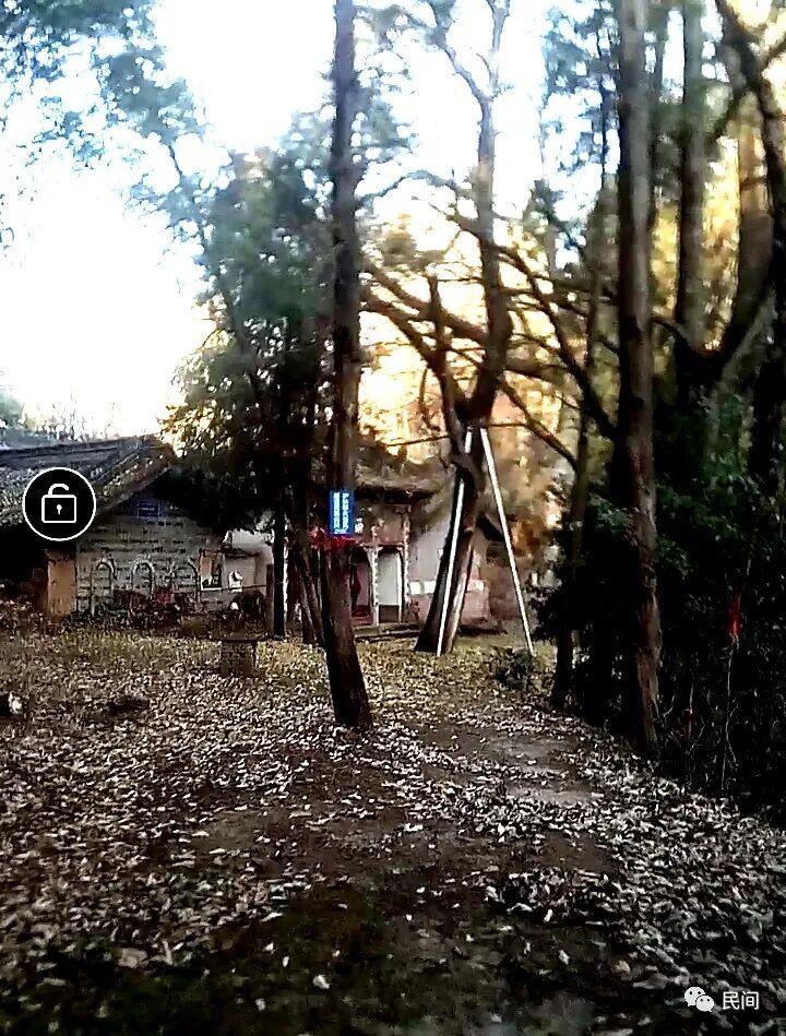 后院中有桂树虬居蛇盘,冬季的到来丝毫没有影响到它,依然生机勃勃,树叶繁茂,苍翠如碧。其下有一个方圆丈余的锥形遮阴网,掀开一角,有石台阶盘旋而下,深约近丈。底部有碧水一泓,光斑粼粼。朋友说,这里有名叫天池。没有这汪水,当年两角山的义军也就无法坚持斗争,于革命有大功劳。我想起山门一侧的辗盘,更加相信这是一块养兵宝地。否则仅有山险而无水源,纵战神临世,也只能演一出《失空斩》了。