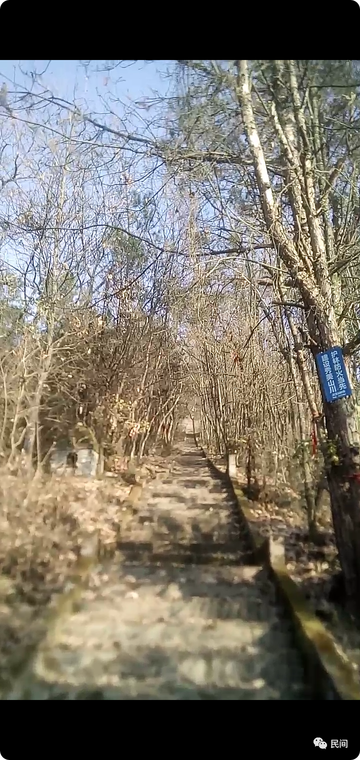 此前通过别人发的图片,知道两角山上有庙,但到此处我们仍只看到山而还未能看到庙,心里疑惑莫非被照“骗”了。但却发现一条天梯直通山顶,起步处有碑文为证,上有万步天梯工程字眼。有无万步却也无法细纠,但这条石梯确实很长很长倒也真实。拾级而上,渐渐感觉脚步沉重呼吸急促,不及三分之一就舍了台阶而选择了半腰另一条天然道路,明显平缓了许多。露出路面的石头就像山体嶙峋的肋骨被厚厚的胡叶黄黄地覆盖,走在上面必须十分的小心,一不留神,脚下一滑,几乎整得我人仰马翻。