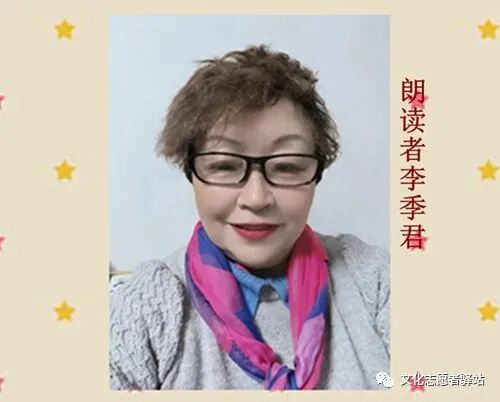 朗读者: 李季君 中华文化促进会会员,中国民间艺术家协会会员,汉中市为老公益志愿者协会副会长,汉中市志愿者朗诵阅读委员会主任。