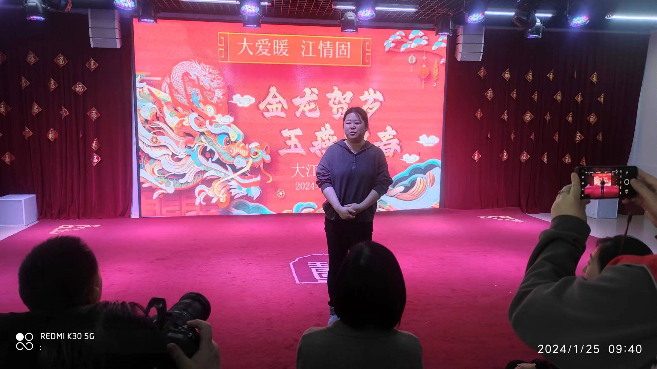 在辞旧迎新之际,1月25日大江社区在市民活动中心的多功能展厅组织开展了“大爱暖 江情固——金龙贺岁,玉燕迎新春”社区新春联欢会,社区工作人员、辖区单位、居民代表一起迎接农历甲辰龙年的到来。