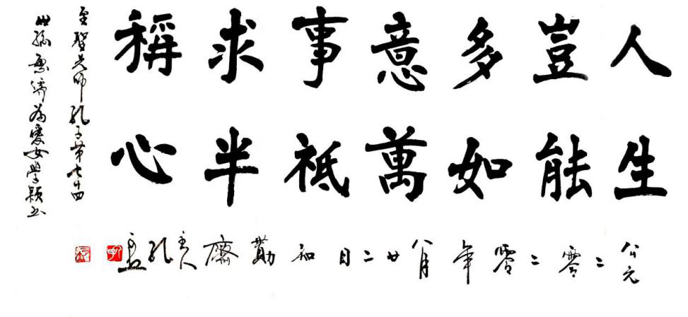 孔可立以品高雅致的格调和雄浑宏阔的修为,去构筑那诗的韵味、那画的美感、那舞的节奏、那歌的旋律,他也收获了别样的魅力人生。当各种荣誉纷至沓来之时,他依然坚守不忘初心的淡泊与旷达,在书法艺术中,不求功名,但求真功,安顿灵魂,同时,在社会上,他不愿独享艺术的果实,他深知登临高峰是时代筑起的基石,于是,他普及书法教育,推广传统文化,他倾心公益事业,播撒爱心,相关教育机构创办的“武汉育才可立小学”,聘请孔可立担任学术顾问……。他心绪宁静而充实,他含蓄平和却追求崇高。