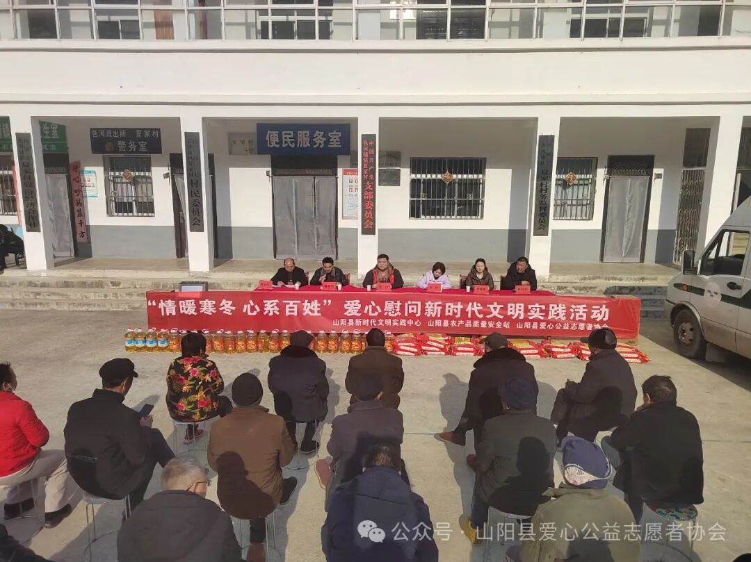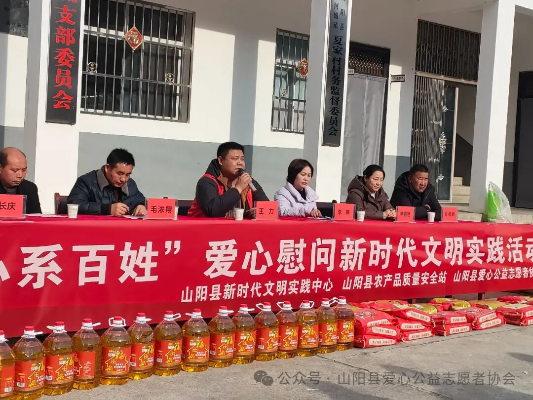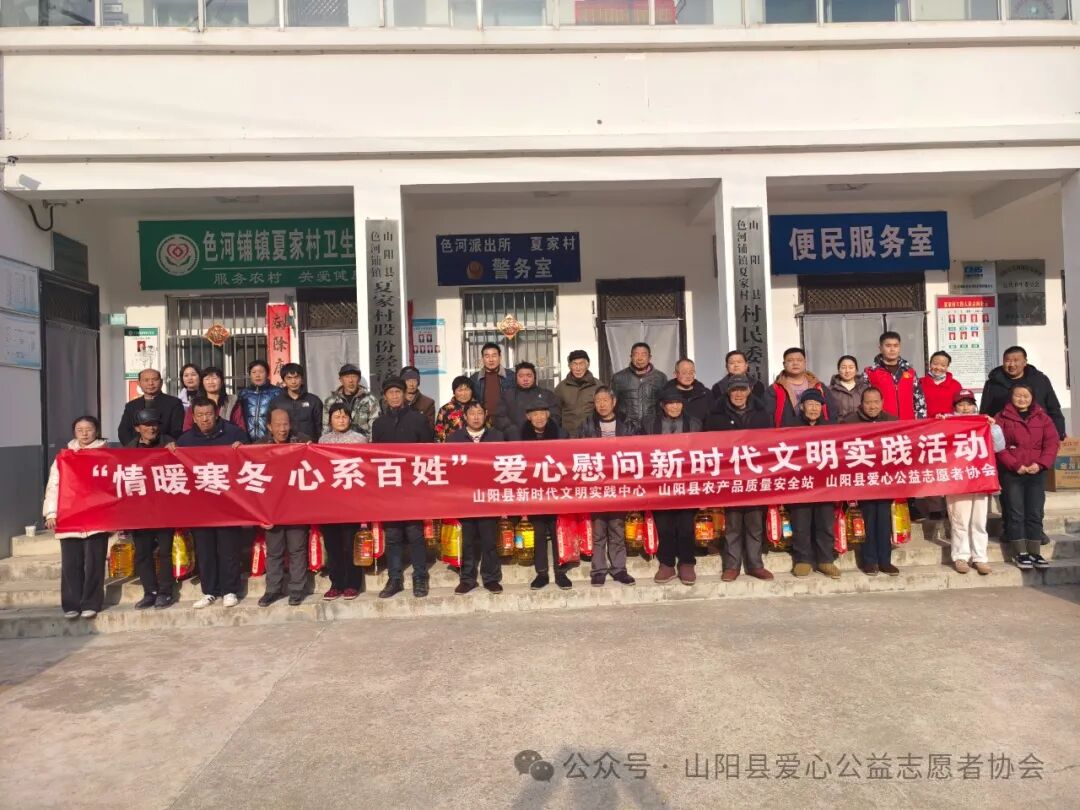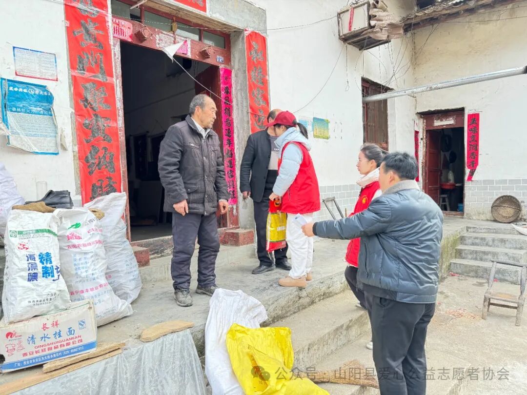 临近年关,为积极践行社会主义核心价值观,大力弘扬“奉献 友爱 互助 进步”的志愿精神,让留守老人、困难群众“温暖过冬 温馨过年”,1月29日,山阳县新时代文明实践中心联合山阳县农产品质量安全站、山阳县爱心公益志愿者协会赴色河铺镇夏家村开展“情暖寒冬 心系百姓”爱心慰问新时代文明实践活动。山阳县农产品质量安全站副站长李琳、干部申春艳、农产品质量安全站驻色河铺镇夏家村第一书记毛浓翔、山阳县爱心志愿者协会志愿者代表、夏家村党支部书记蔡长庆以及村两委会班子成员、受赠群众代表参加活动。活动中为该村40户留守老人送去了价值5000元的大米和食用油,帮扶干部和志愿者走进群众家中、详细了解他们近期的生活情况,送上了党和政府的一份关爱,叮嘱他们天冷加衣、保重身体,预祝他们新春愉快、阖家幸福。活动的开展,体现了帮扶单位干部和村干部对群众发自内心的关心,同时也用实际行动助力了乡村振兴,弘扬了社会文明新风,深受好评和称赞。