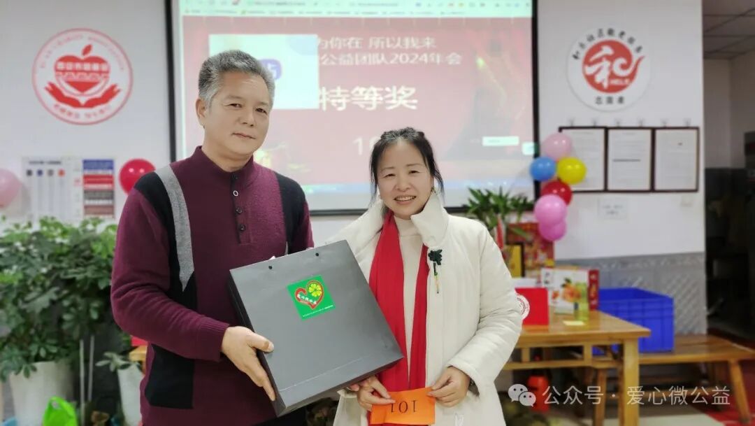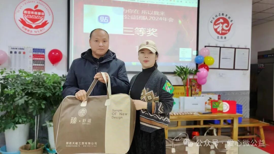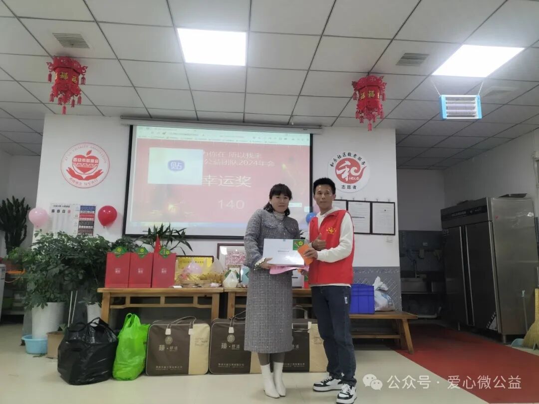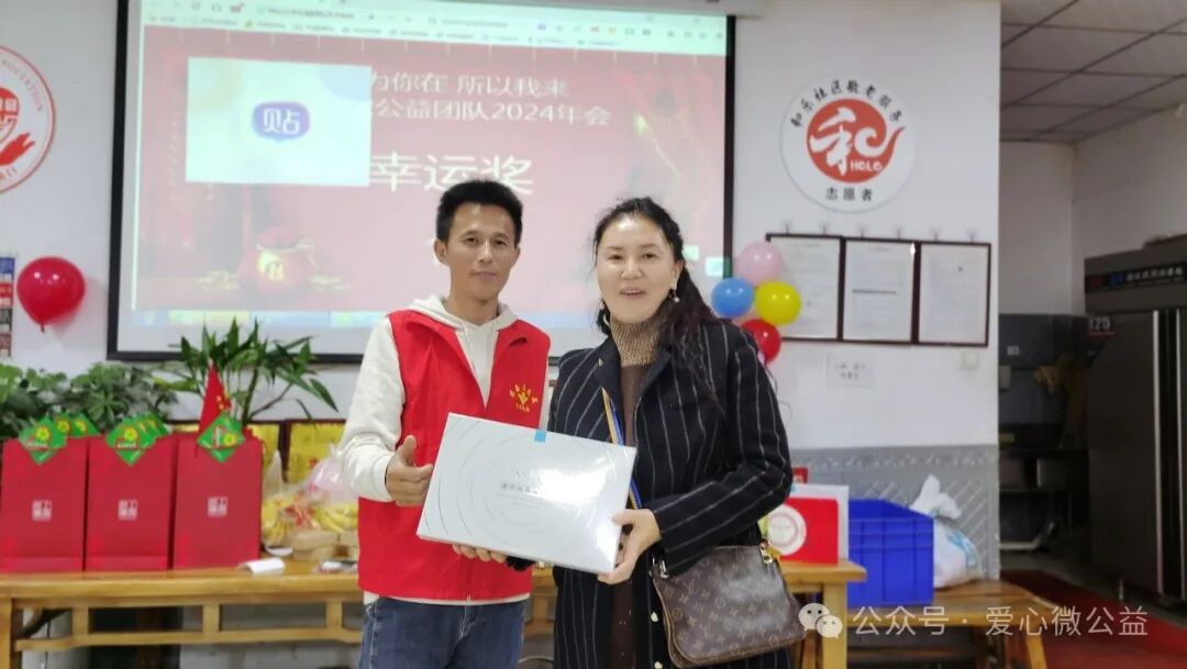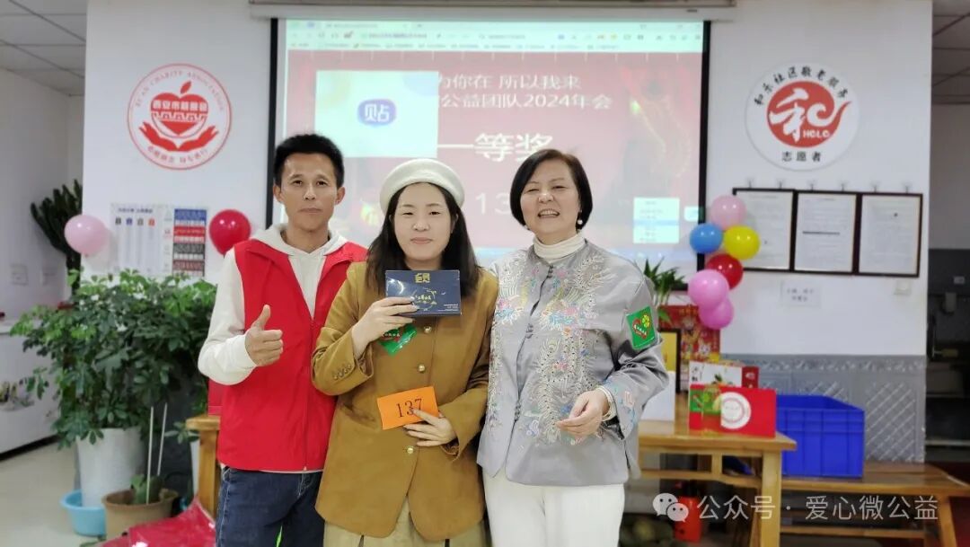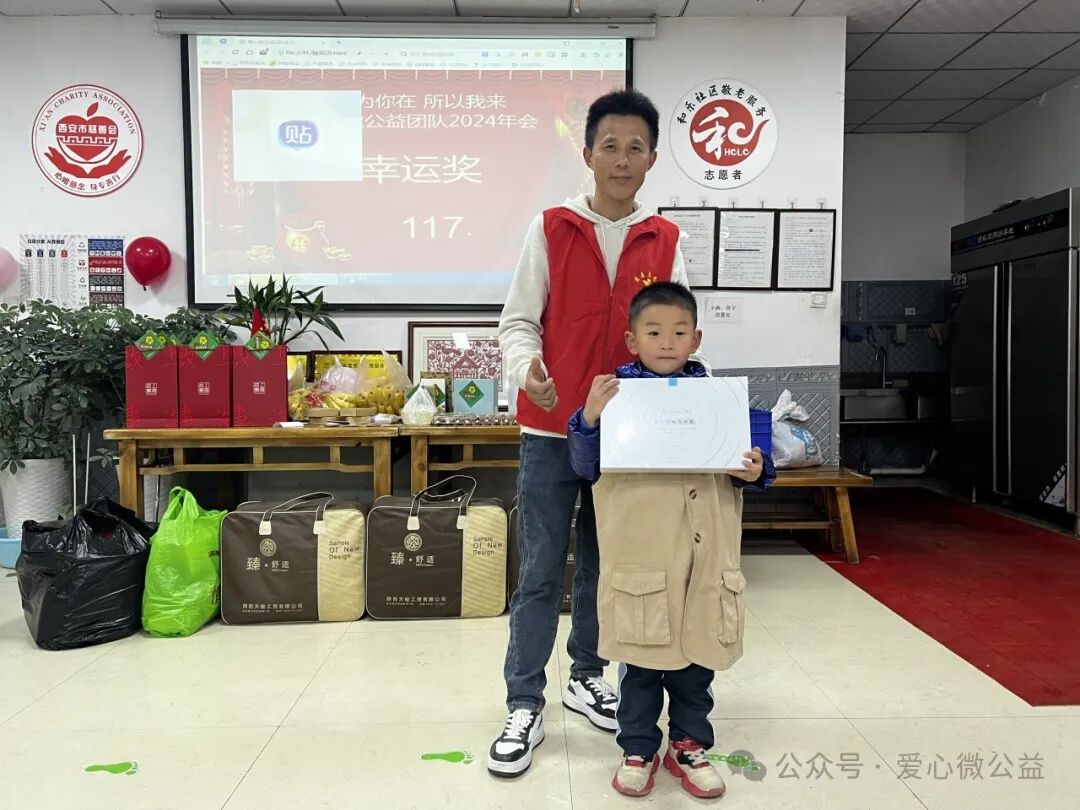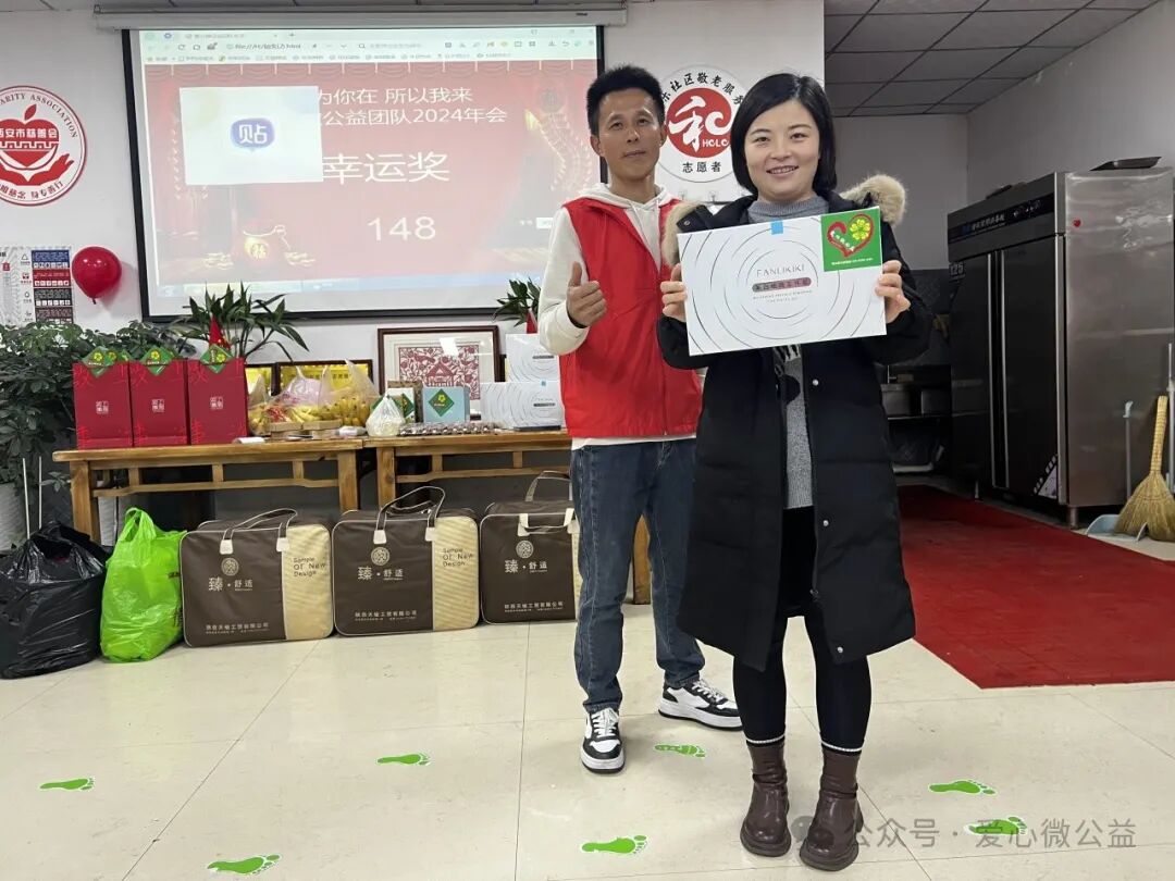 2024 年元月 6 号,陕西省慈善协会,西安爱心微公益辞旧迎新年会“和乐之家”如约举行。满脸笑容的微爱家人们开始布置年会现场,微爱家人们自发筹备年会奖品,礼品,张静带来了毛毯,护肤品,糖葫芦,李艳红捐了红围巾,陈艳丽带来了水果,瓜子,,杭太荣带着了旅游年卡等等爱心物资,雅雅带来了精心编制的手绳……“因为你在,所以我来” 爱心微公益 年会红色横幅格外的鲜艳。