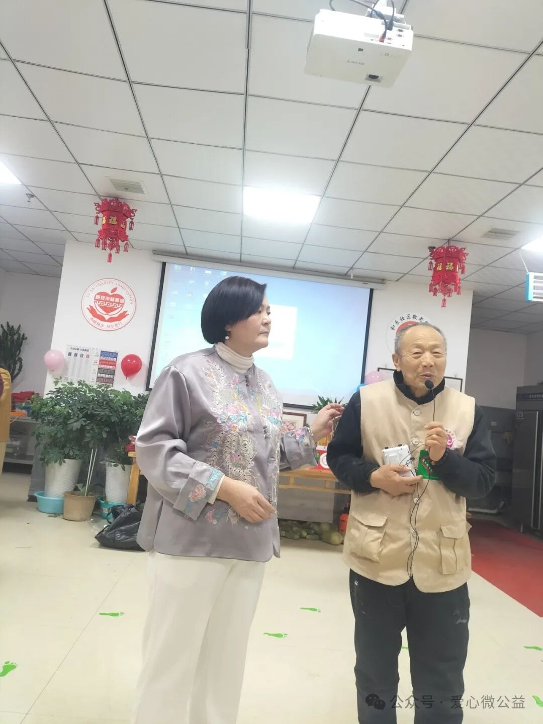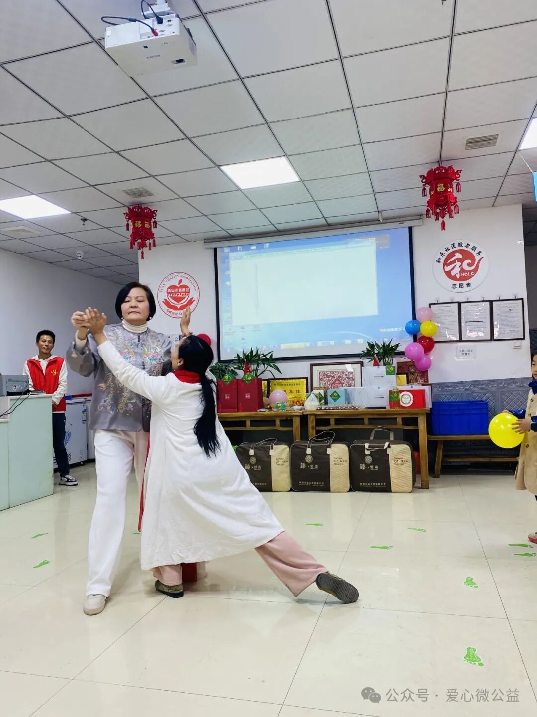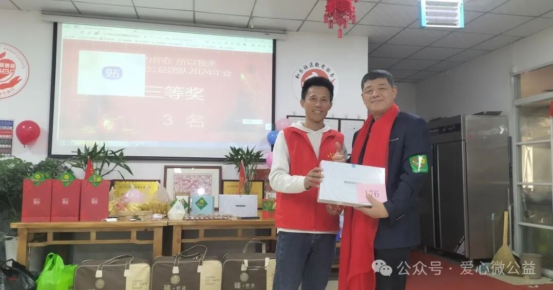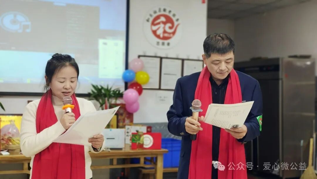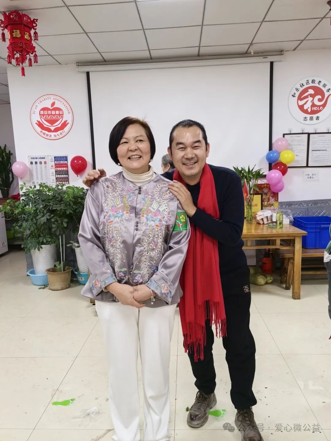 2024 年元月 6 号,陕西省慈善协会,西安爱心微公益辞旧迎新年会“和乐之家”如约举行。满脸笑容的微爱家人们开始布置年会现场,微爱家人们自发筹备年会奖品,礼品,张静带来了毛毯,护肤品,糖葫芦,李艳红捐了红围巾,陈艳丽带来了水果,瓜子,,杭太荣带着了旅游年卡等等爱心物资,雅雅带来了精心编制的手绳……“因为你在,所以我来” 爱心微公益 年会红色横幅格外的鲜艳。