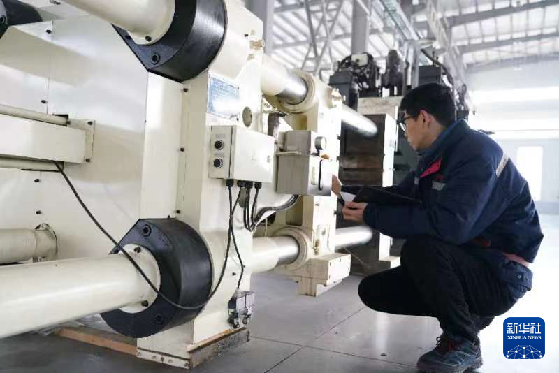 2月13日,唐山国亮新能源研究院有限公司内,工人在调试安装生产设备。新华社 发