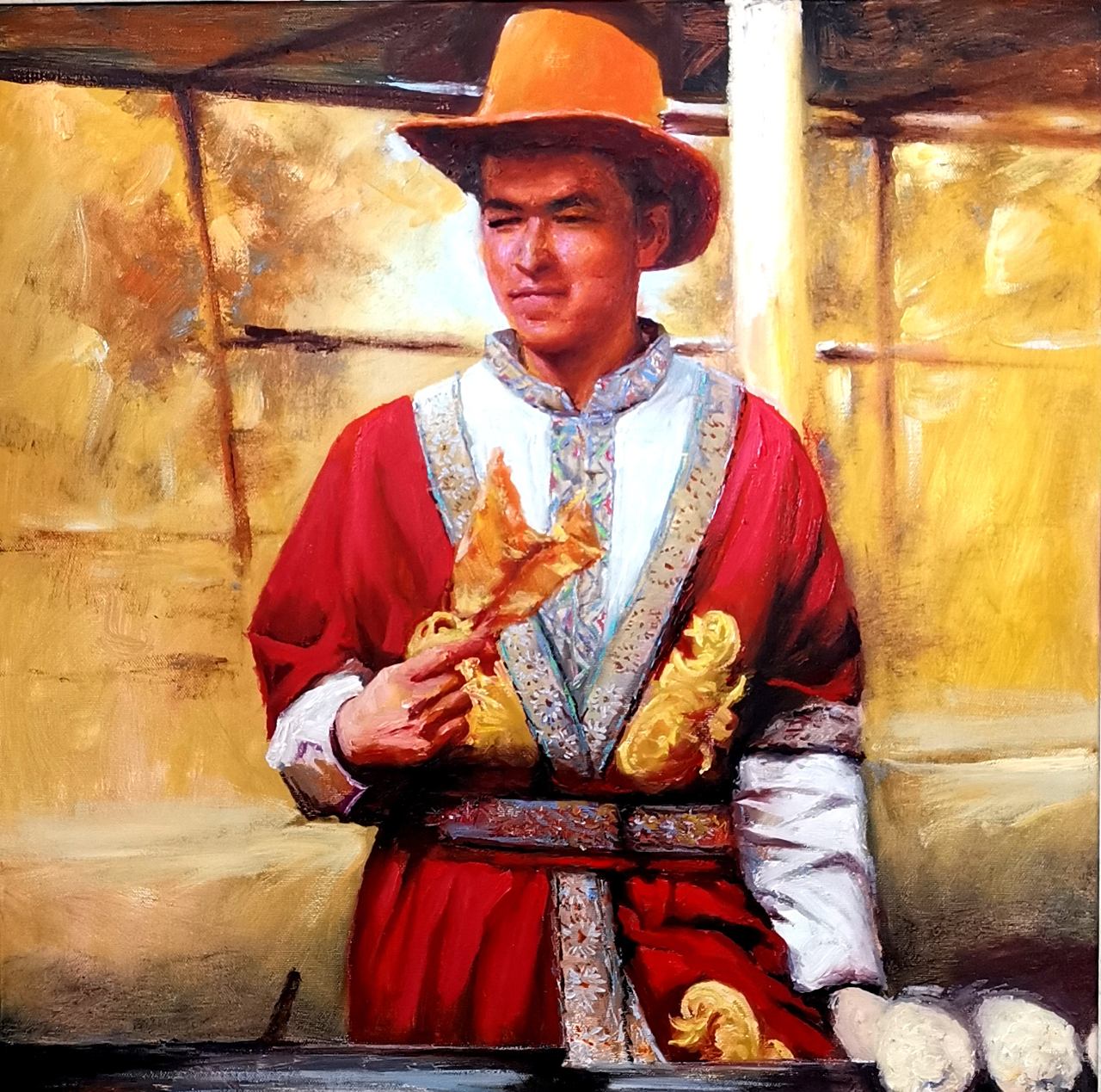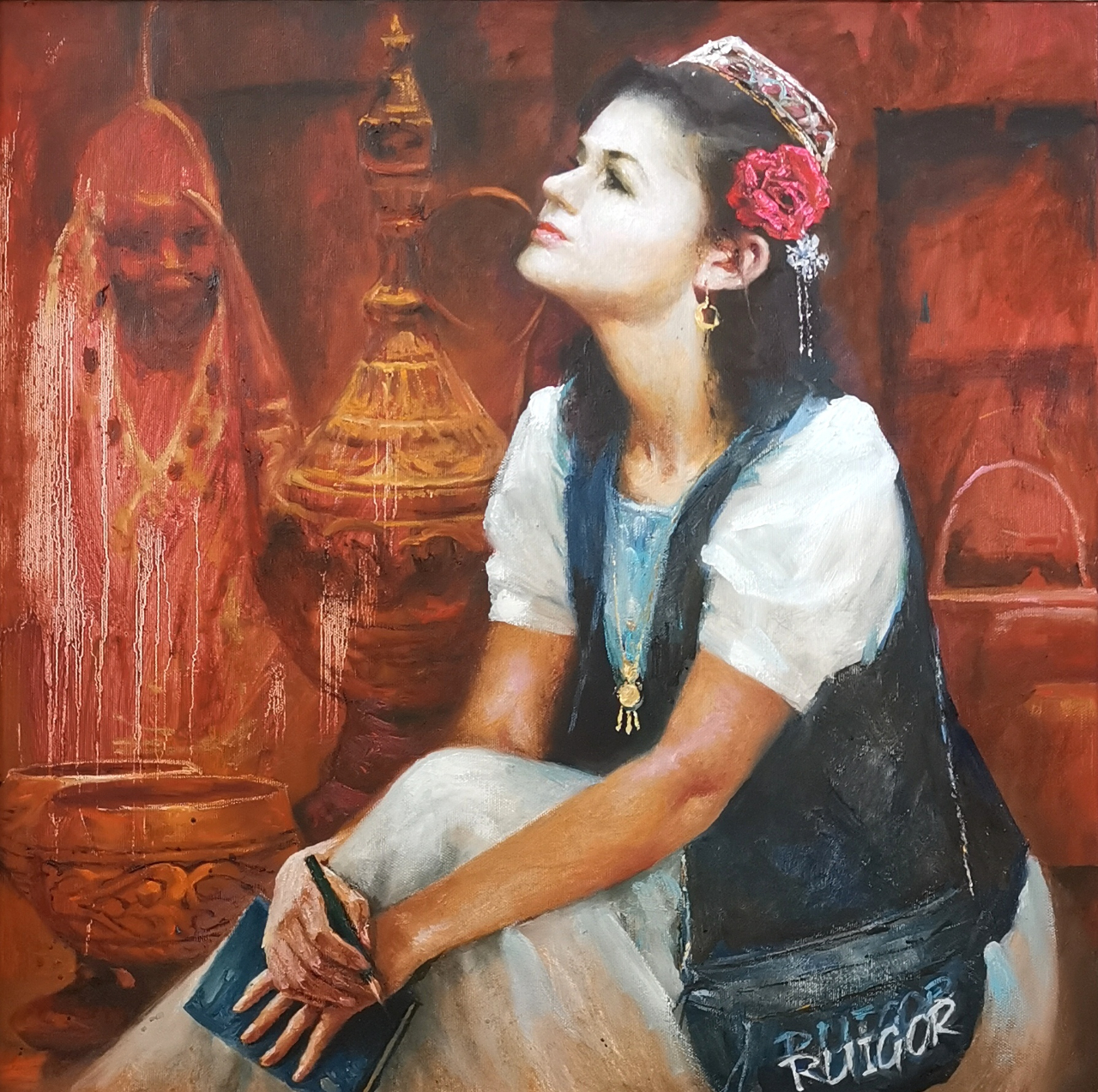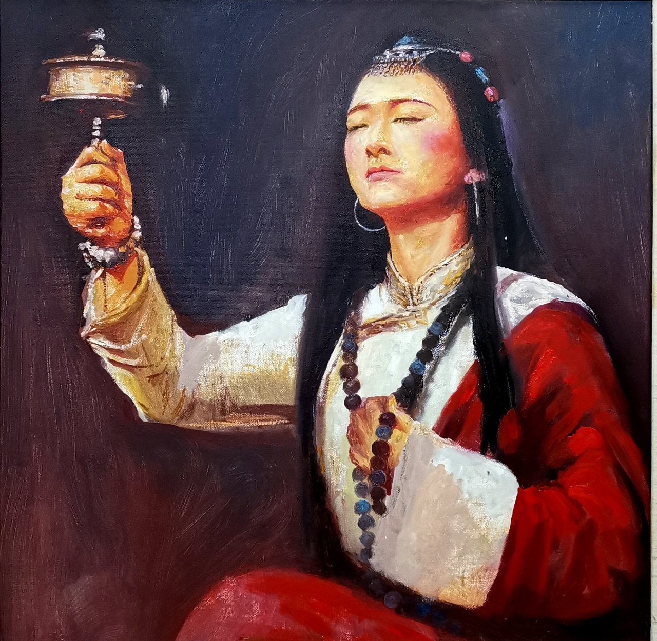 每一幅作品,都像是他心中流淌出的诗意。他笔下的肖像,无论是几位少数民族老人一起下棋还是手捧书本的女孩,都仿佛带有东方的诗词意境,形神兼备,美得不可方物。他的色彩运用,既有传统美学的典雅,又不失现代艺术的张力,使得画面既有深沉的内涵,又有跃动的生命力。