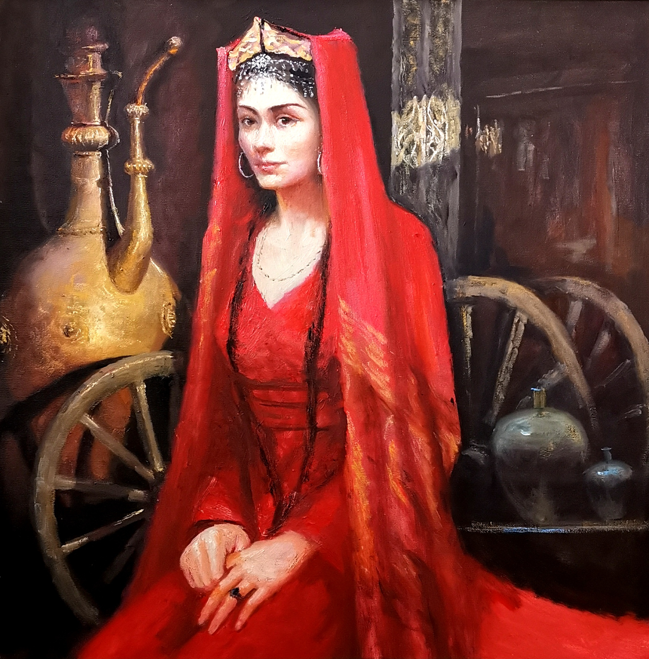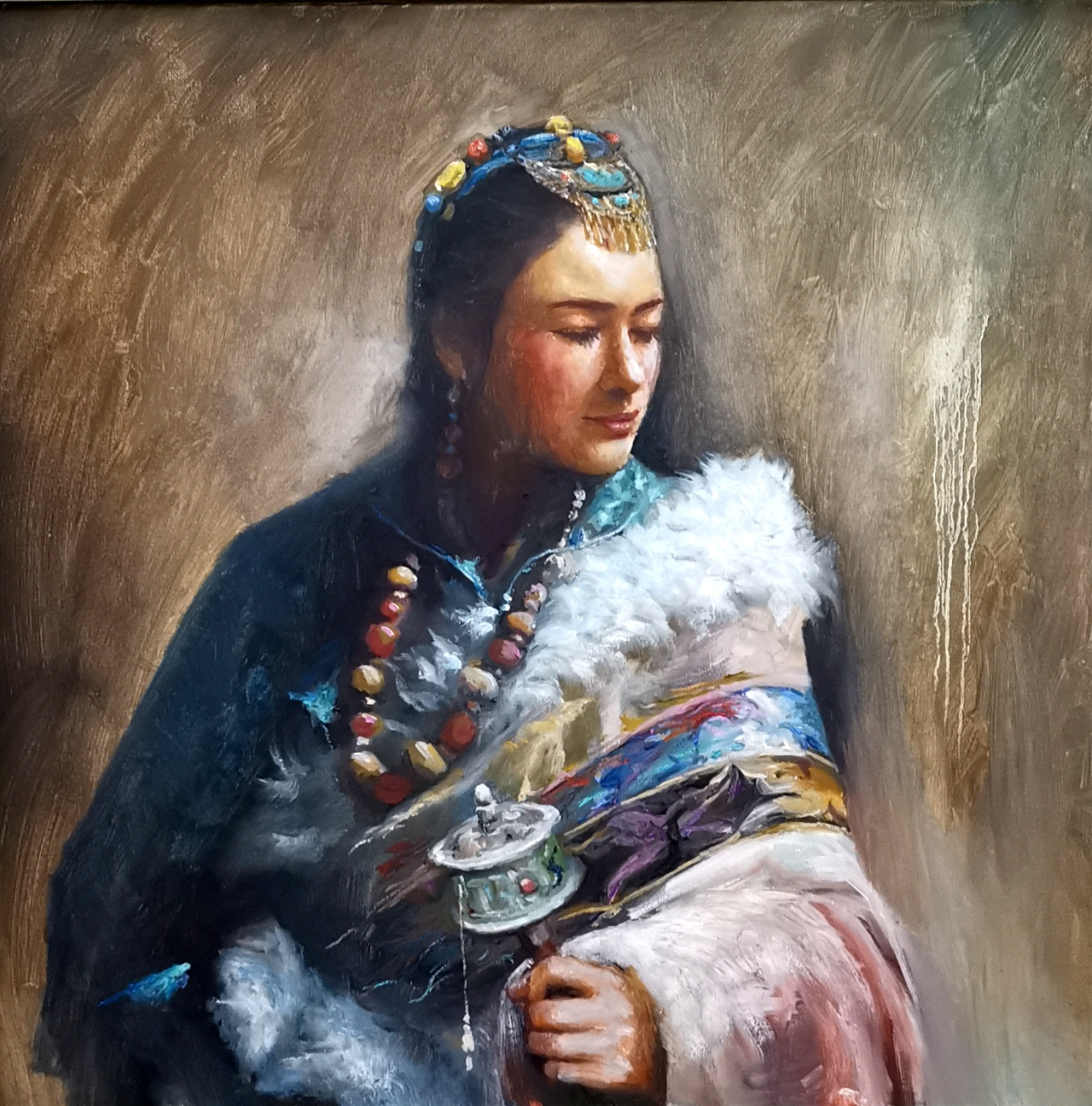 《库尔勒女子》油画作品入选在北京水立方书画展并釉彩瓷绘此展览中。