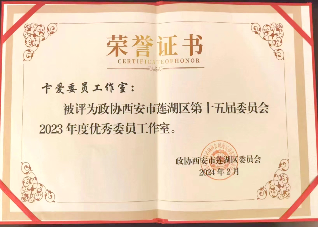 卞爱委员工作室被评为政协西安市莲湖区第十五届委员会2023年度优秀委员工作室