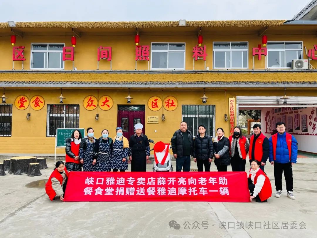 【捐赠背后的故事】这辆电动车是由峡口镇雅迪专卖店薛开亮捐赠的,他深知社区食堂在服务居民、特别是为老年人提供便利餐饮服务方面所发挥的重要作用。为了更好地保障老年人用餐,让热腾腾的美食能够更快地送到老年人的手中,他决定捐赠这辆价值4000余元的电动车。这份心意,如同一缕春风,吹拂着社区的每一个角落,让我们感受到了社区大家庭的温暖与和谐。
