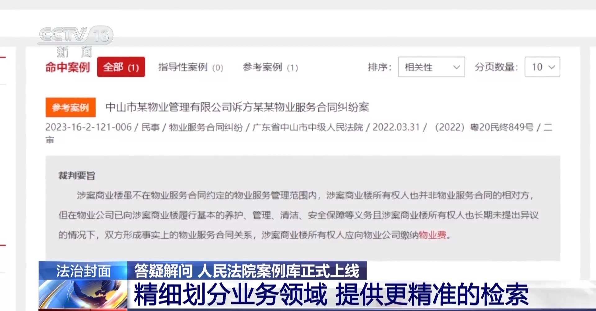 最高人民法院研究室司法解释和案例指导处负责人 贾玉慧:大家在用平台的时候可以通过关键词进行检索。比如大家日常中遇到了物业纠纷,通过物业费关键词检索会有相关的参考案例,大家可以看看自己的遇到的情况是不是参考案例涉及的情况。通过参考相关的案例,对自己的行为预期也有一个预判。